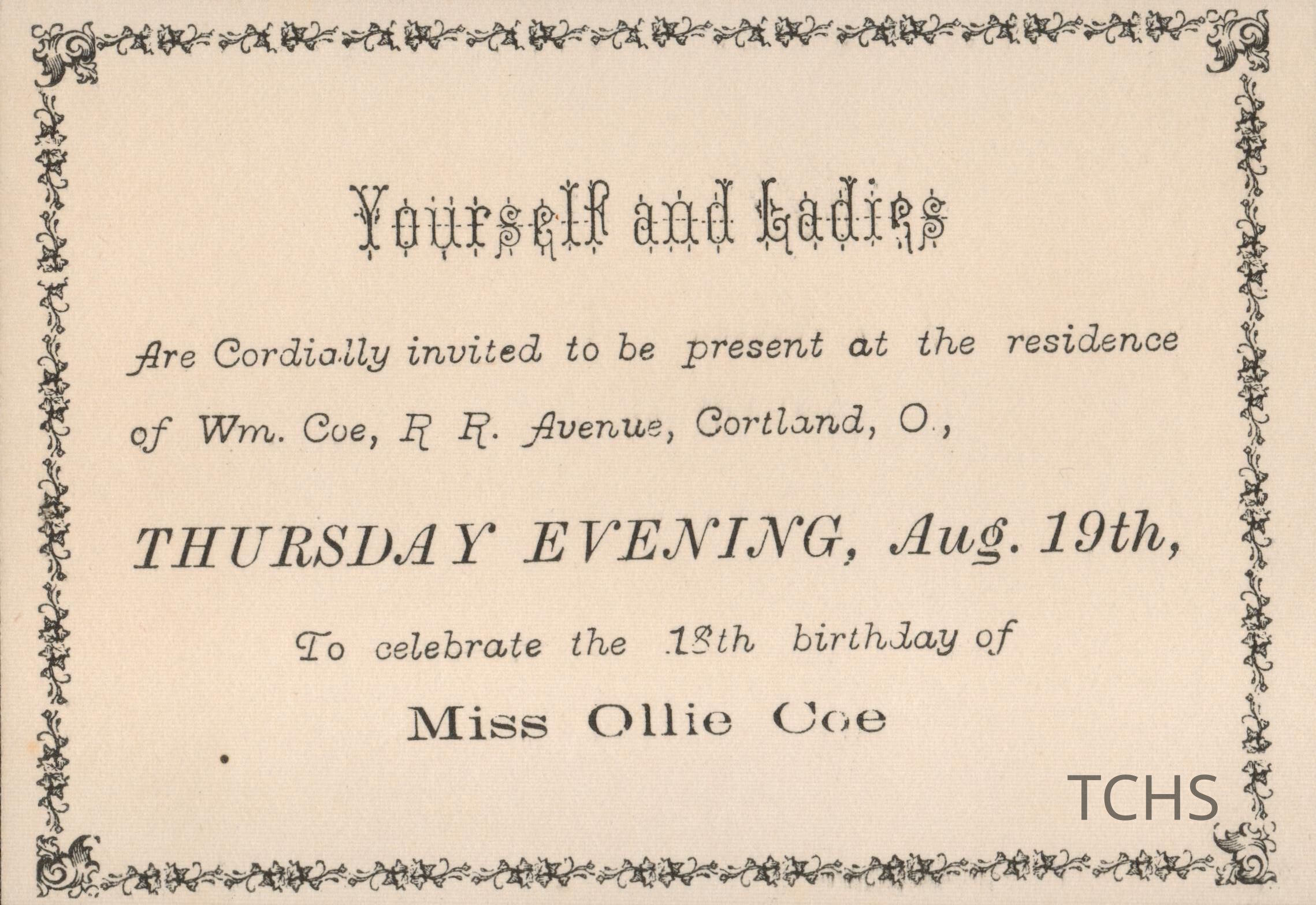 Ollie Coe's birthday invitation.