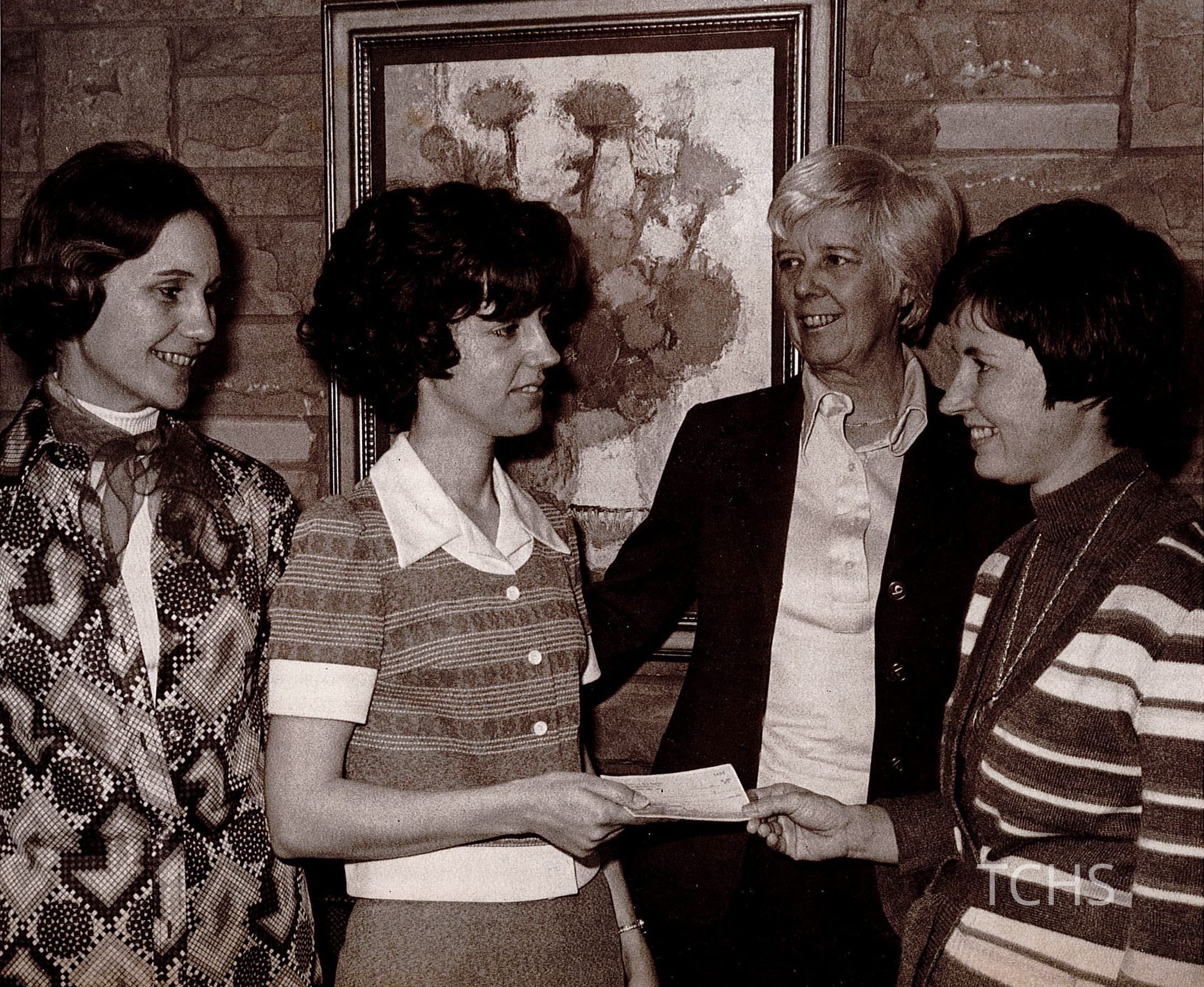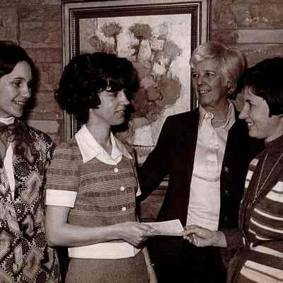 Left to right: Mrs. Barbara Anderson, director of children's rehab center; Mrs. Charlene Jones, assistant director of Kinsman home; Mrs. Roberta Graham, executive director scope; Mrs. Jan Poncar, receiving checks from Jr. CraftAcquisition