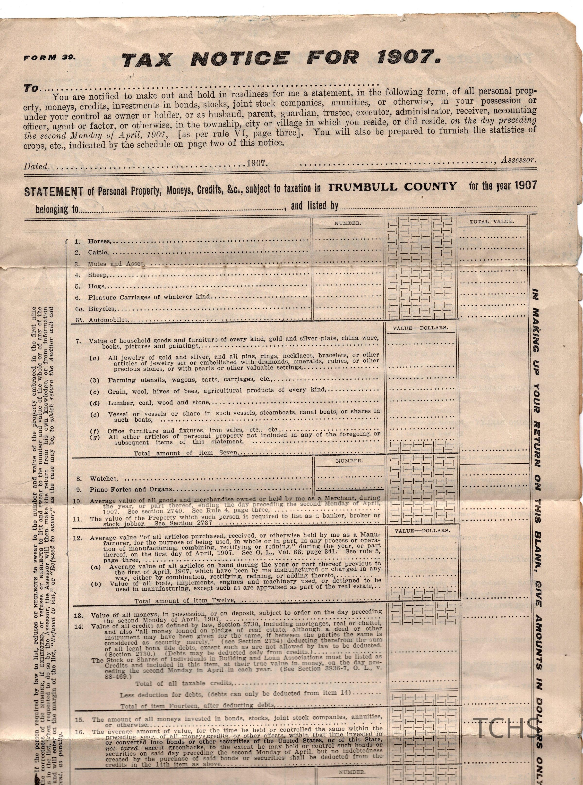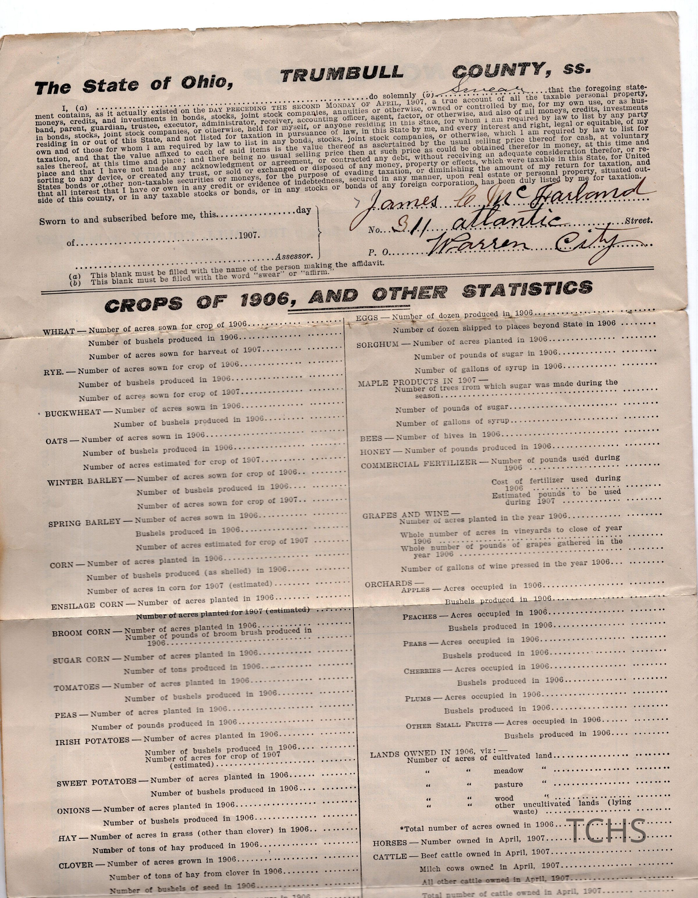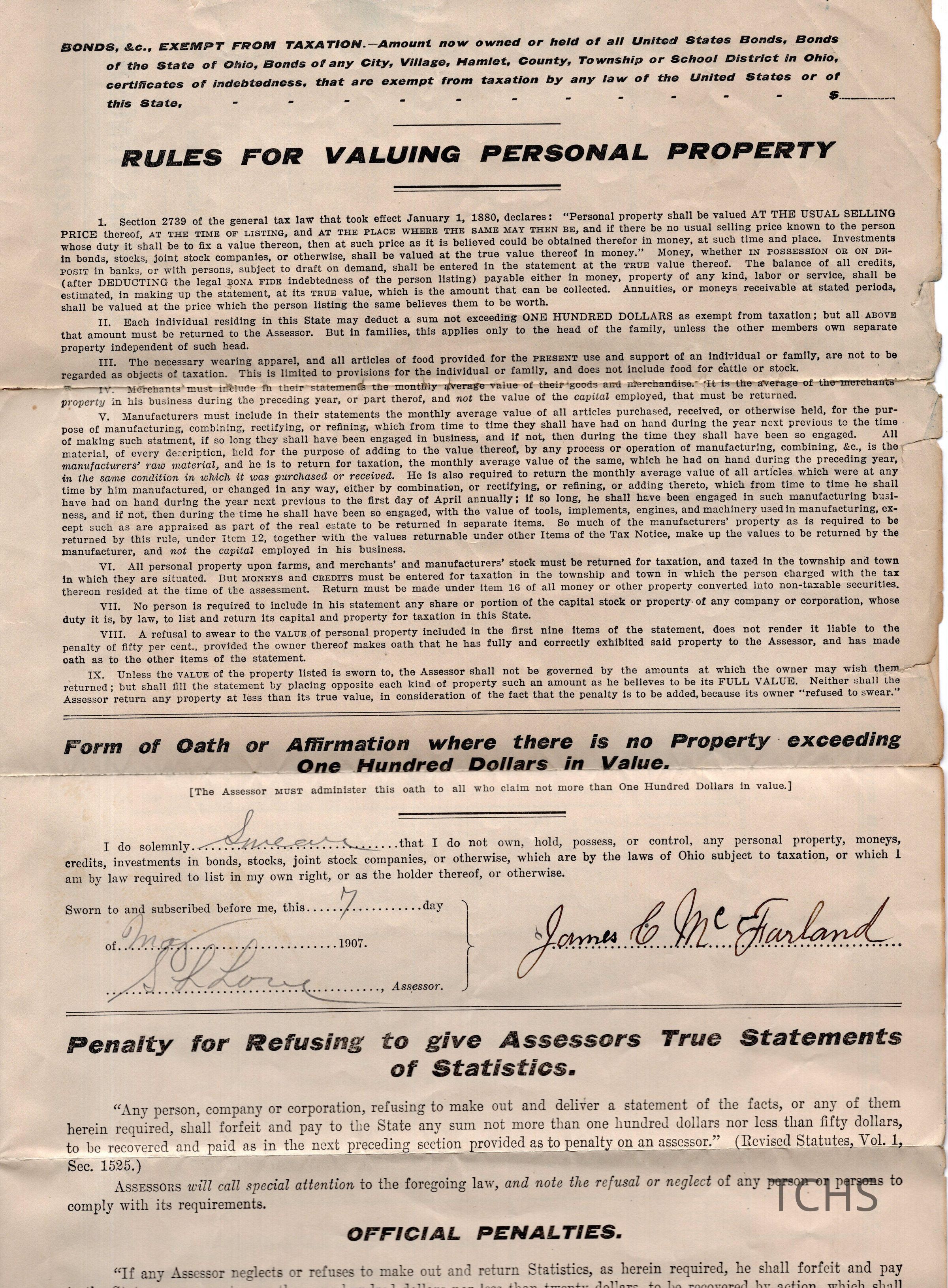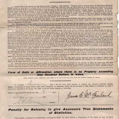 McFarland tax form, 1907Entry/Object ID