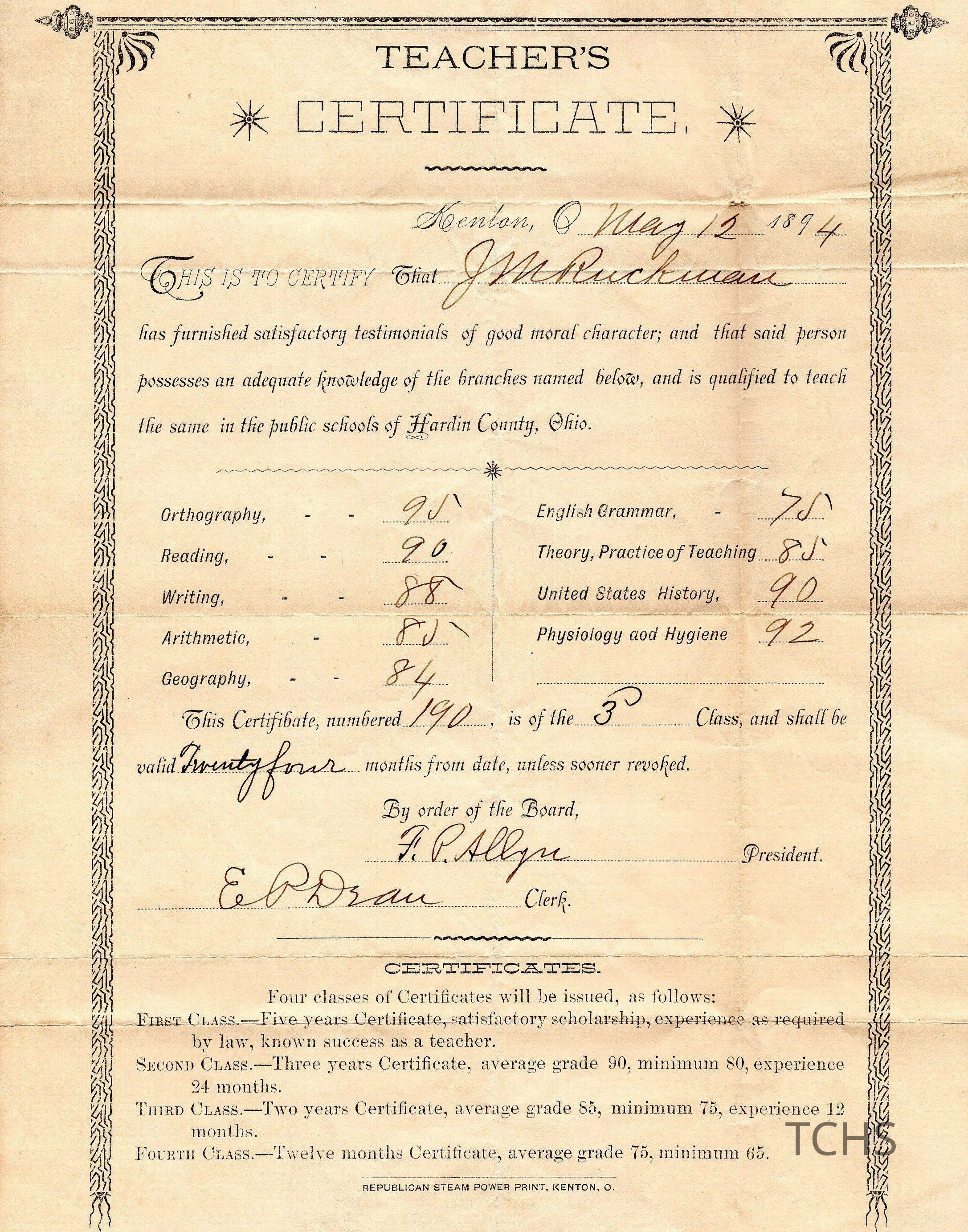James M. Ruckman Teacher's Certificate, 1894Entry/Object ID