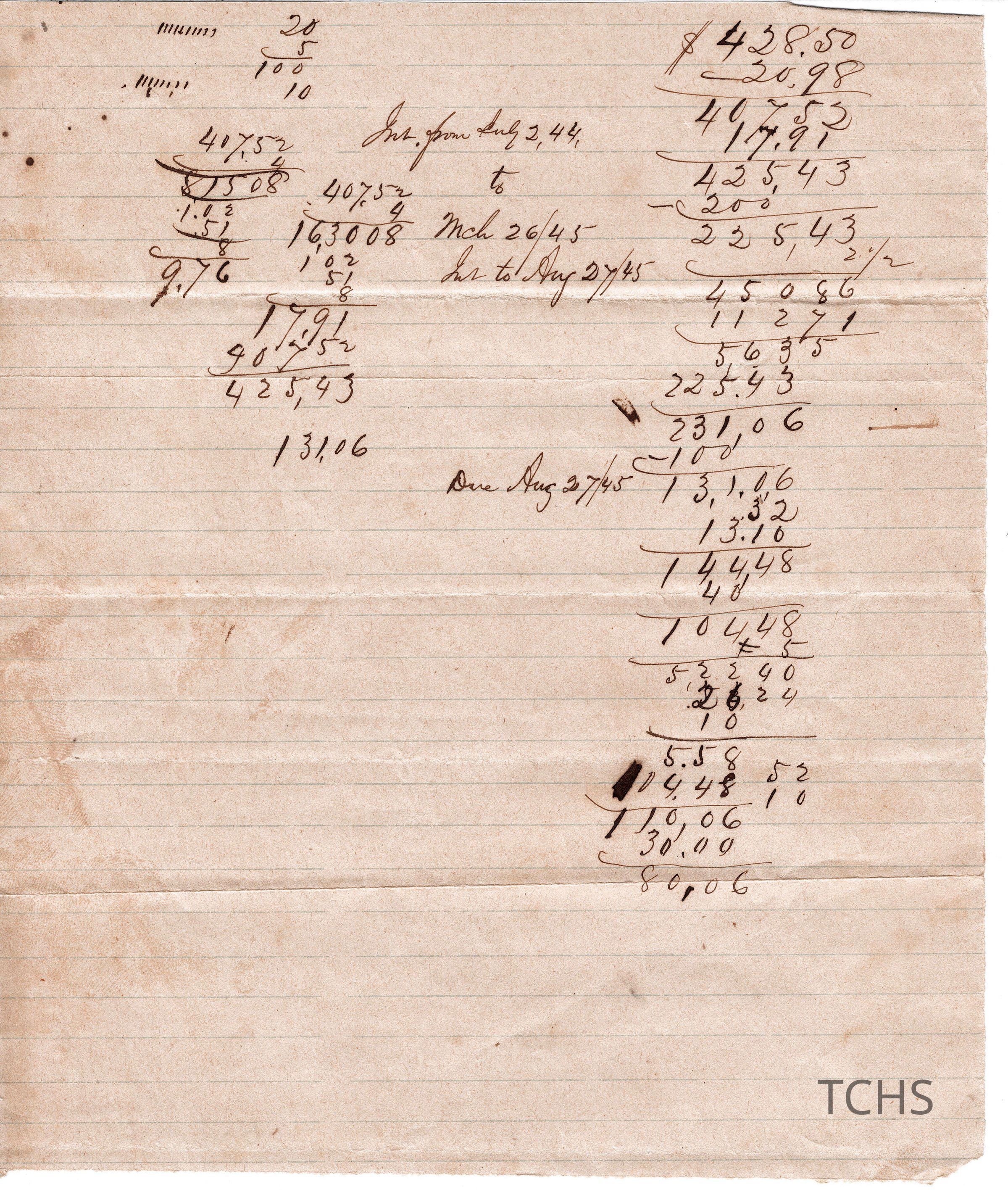 Ledger accounts, found in the Horace Stevens Collection, for 1844-1845Archive Details