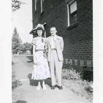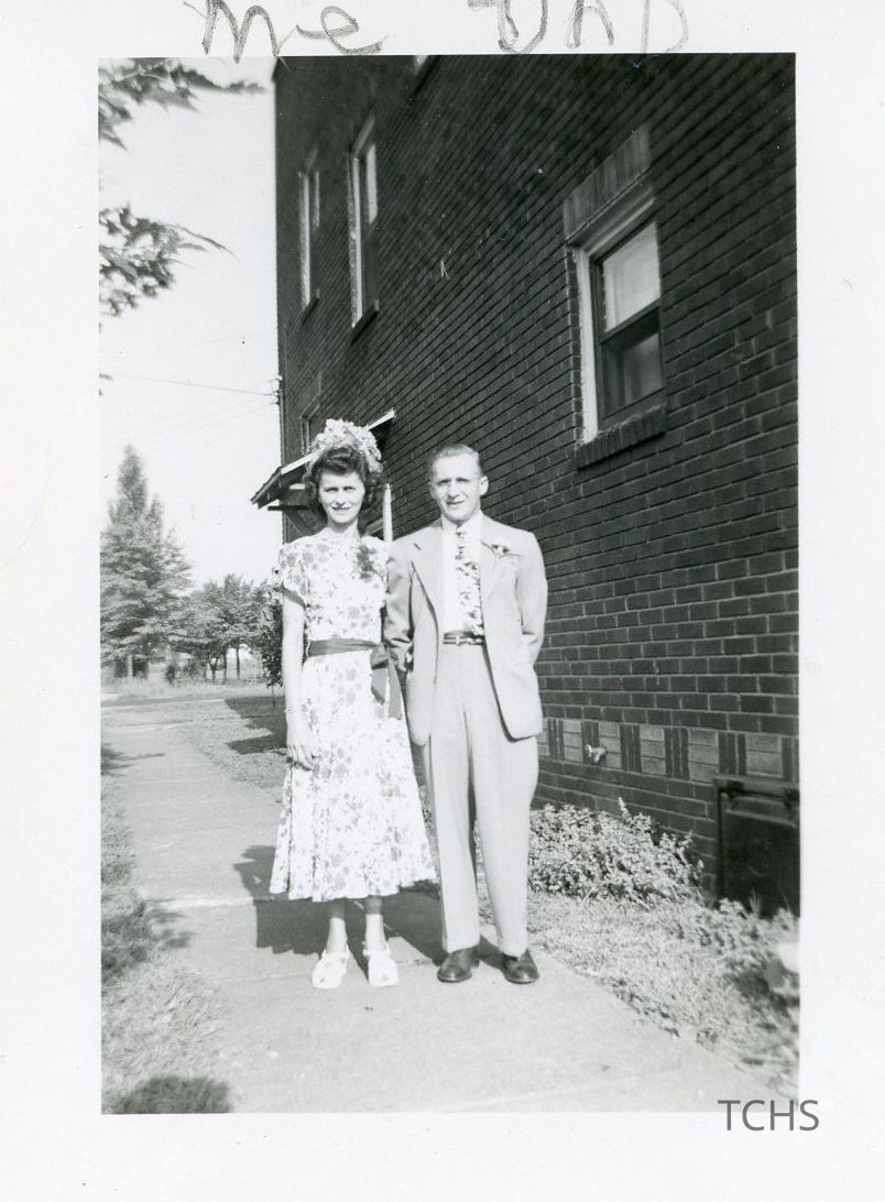 A photograph of Marcella and Joseph Futey outside of 1957 Highland Ave.
