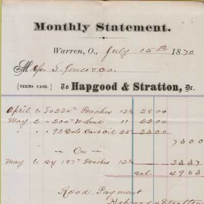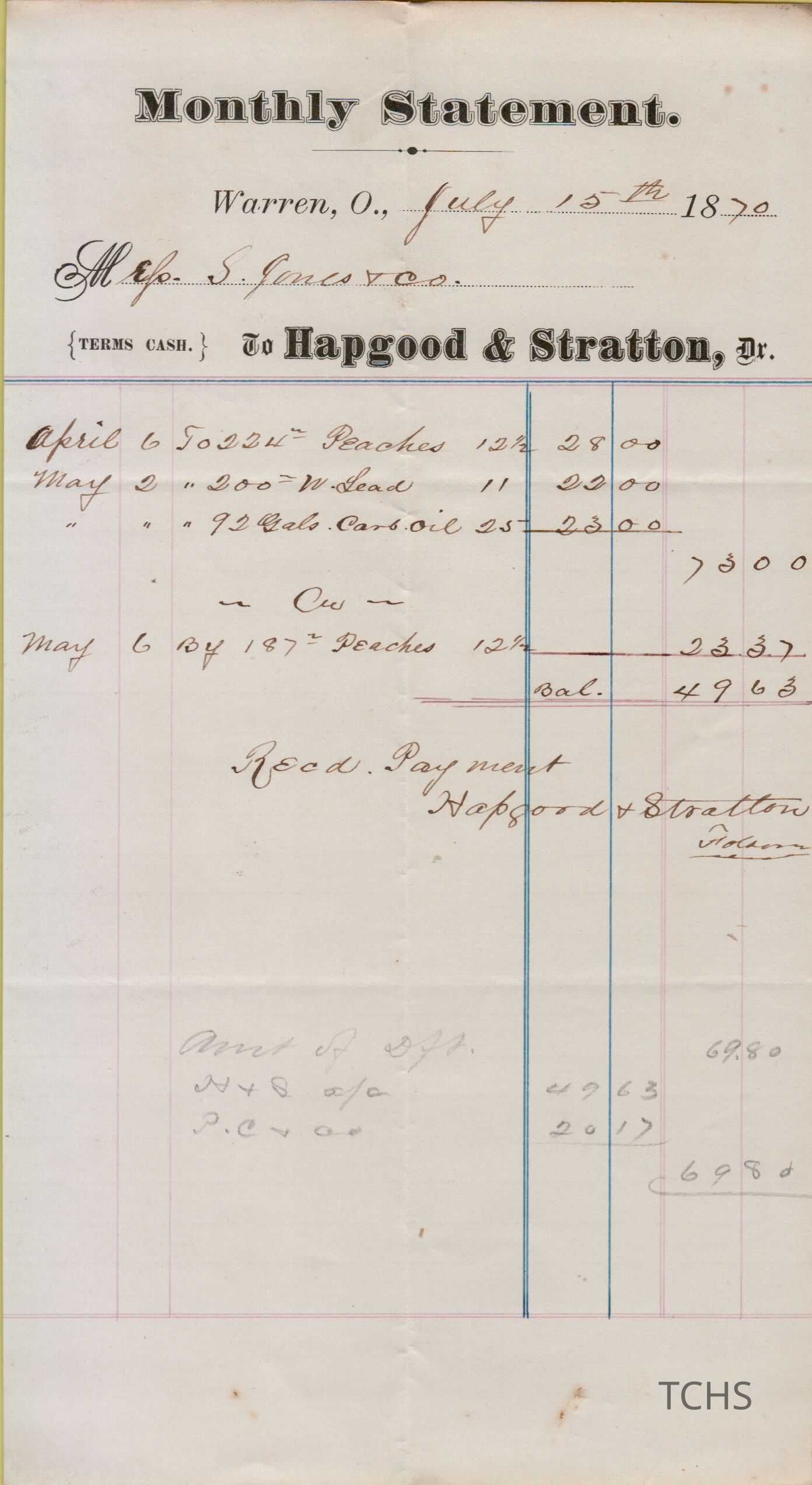 Monthly statement from Hapgood & Stratton to S. Jones & Co.Collection