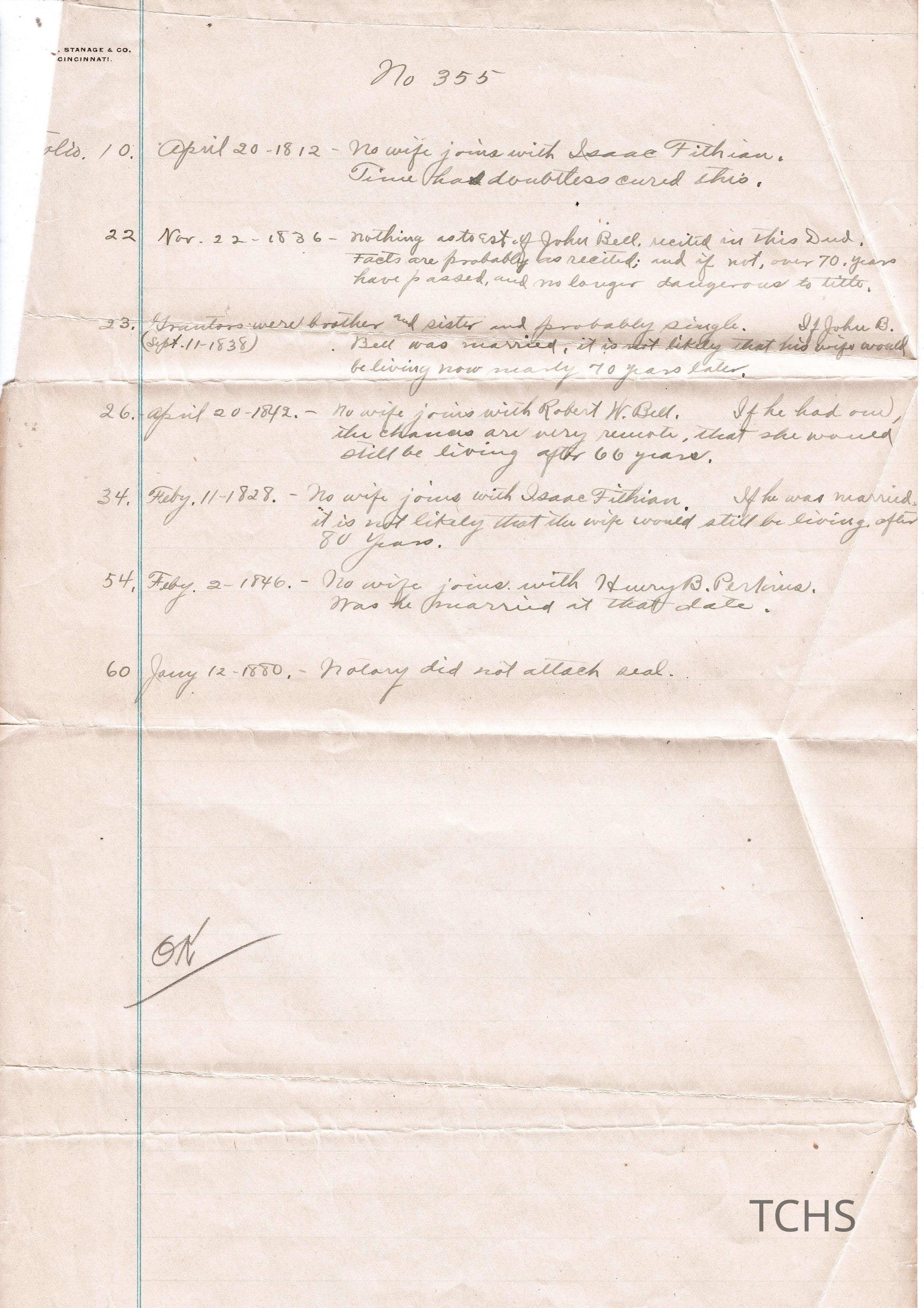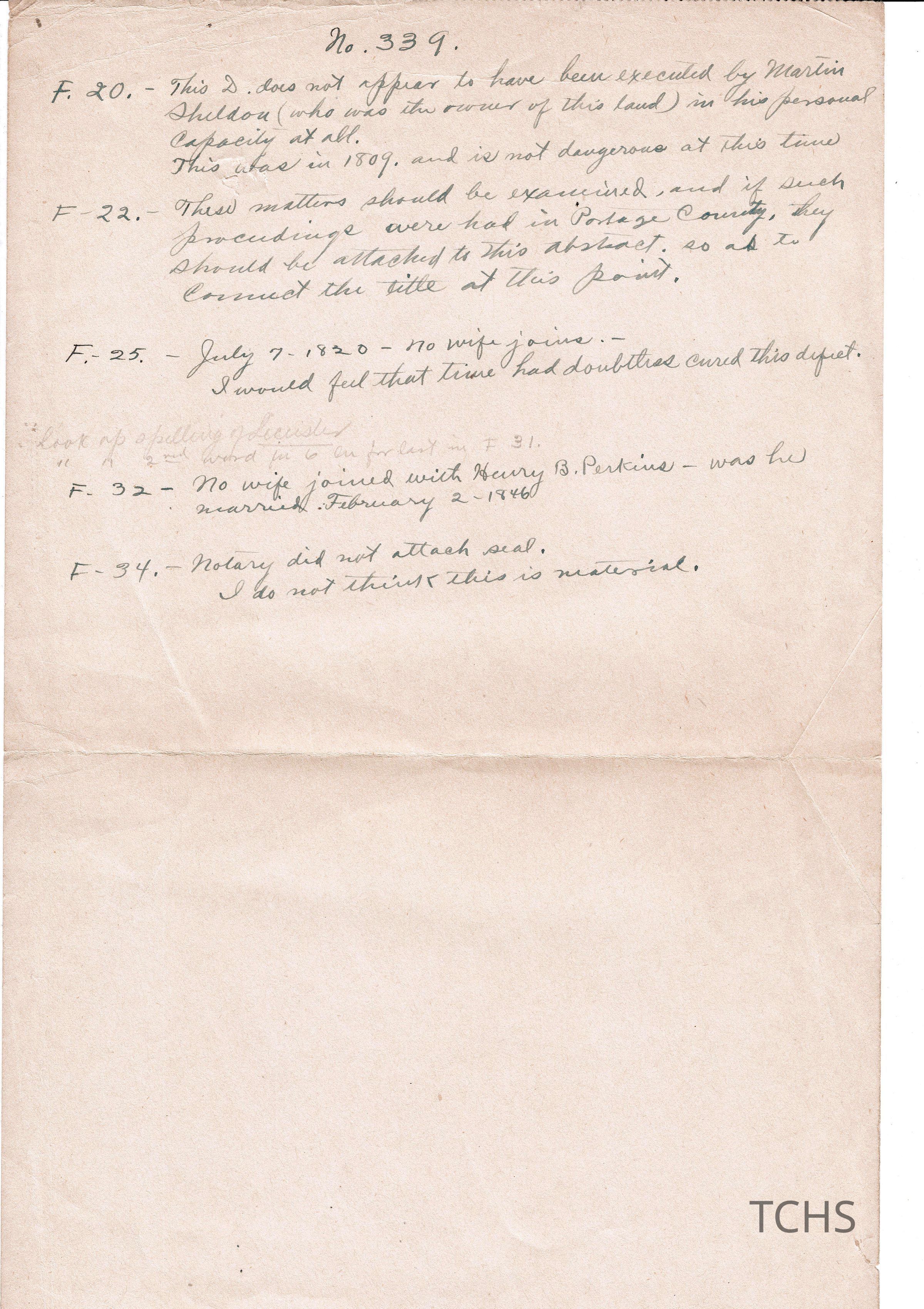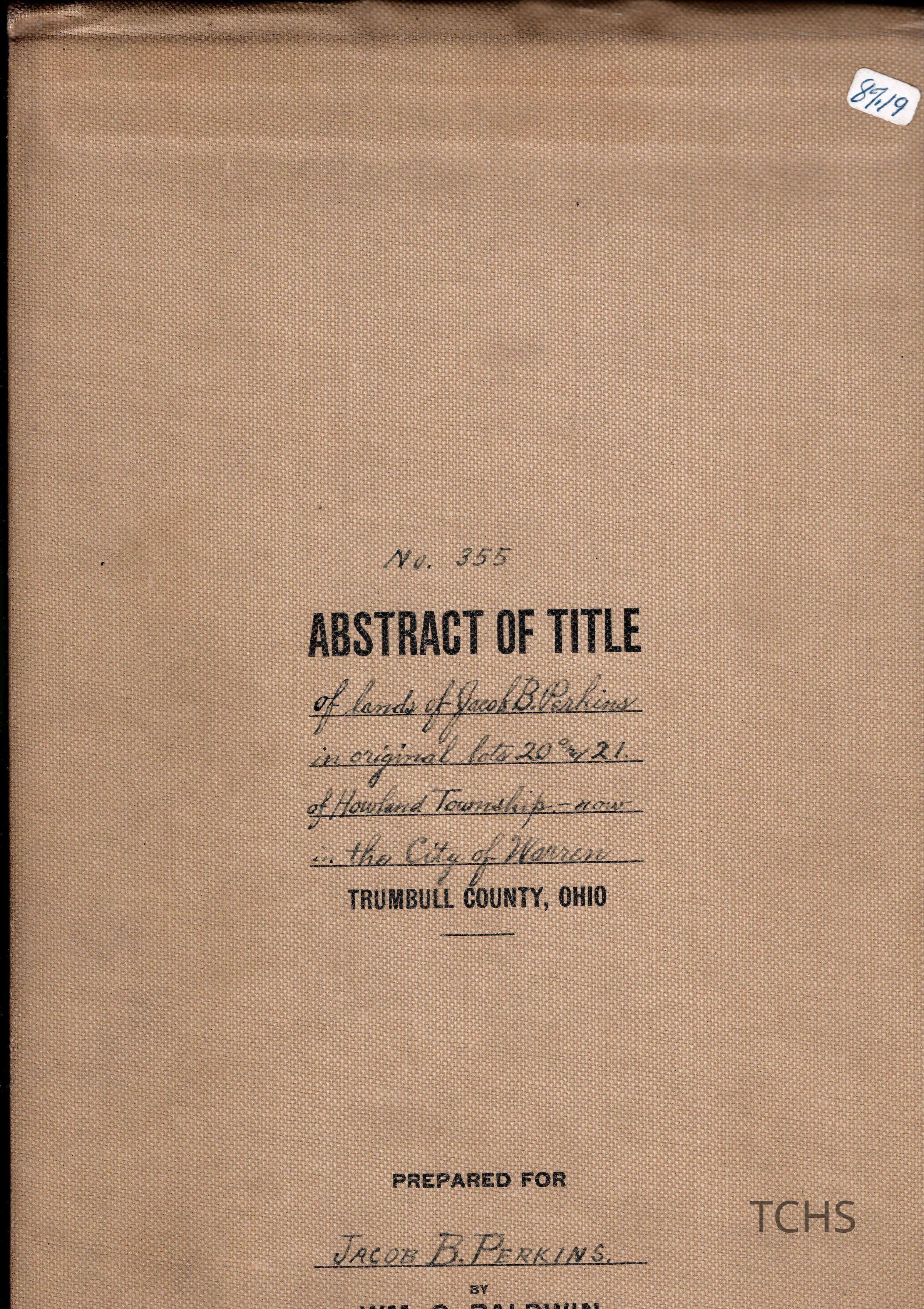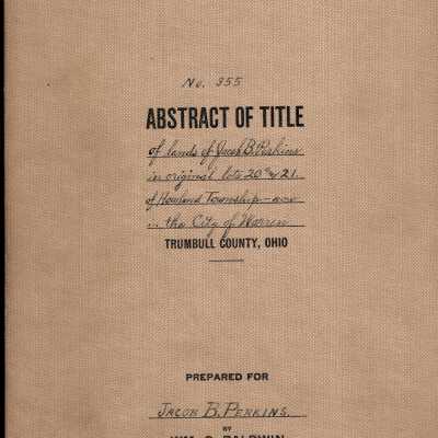 Abstract of Title for No. 355, of lands of Jacob B. Perkins in original lots 20 and 21 of Howland Township, now in the City of Warren. Prepared for Jacob B. Perkins.