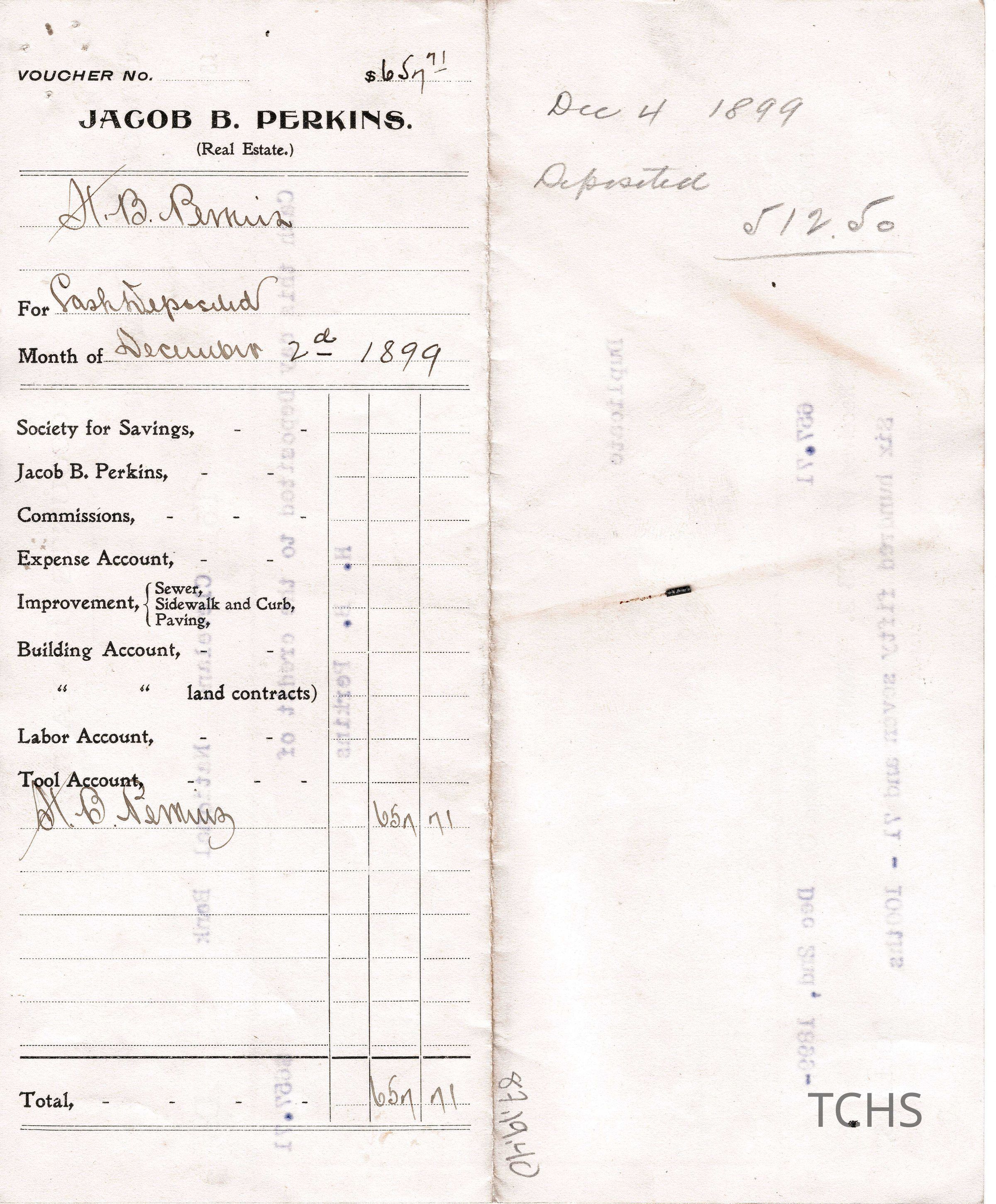 Accounts Payable, 1899, Jacob Perkins to Uncle Henry Bishop PerkinsEntry/Object ID