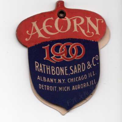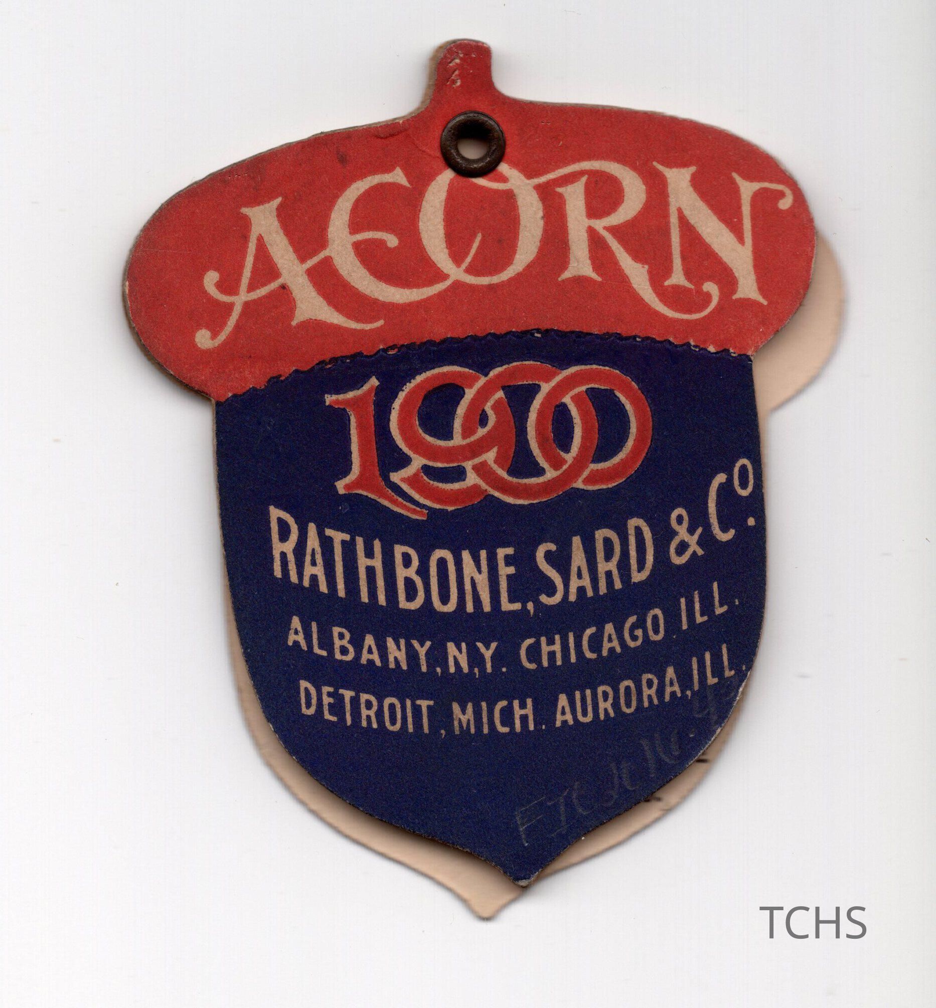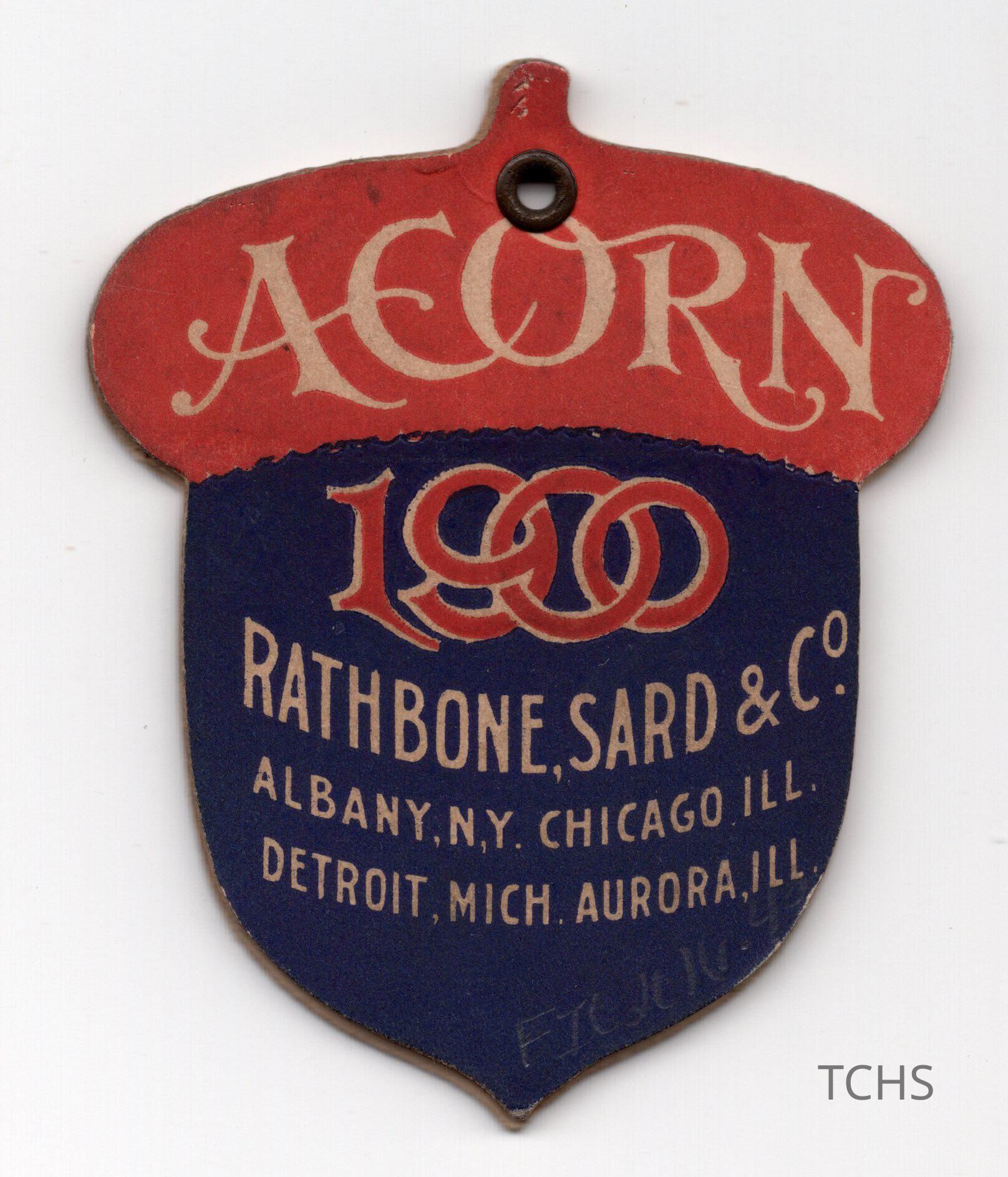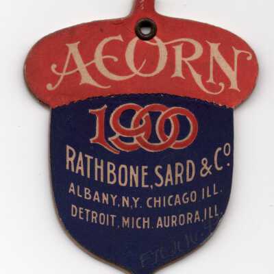 Acorn shaped 1900 calendar advertising Acorn Stoves and Ranges, manufactured by Rathbone, Sard, and Co.Acquisition