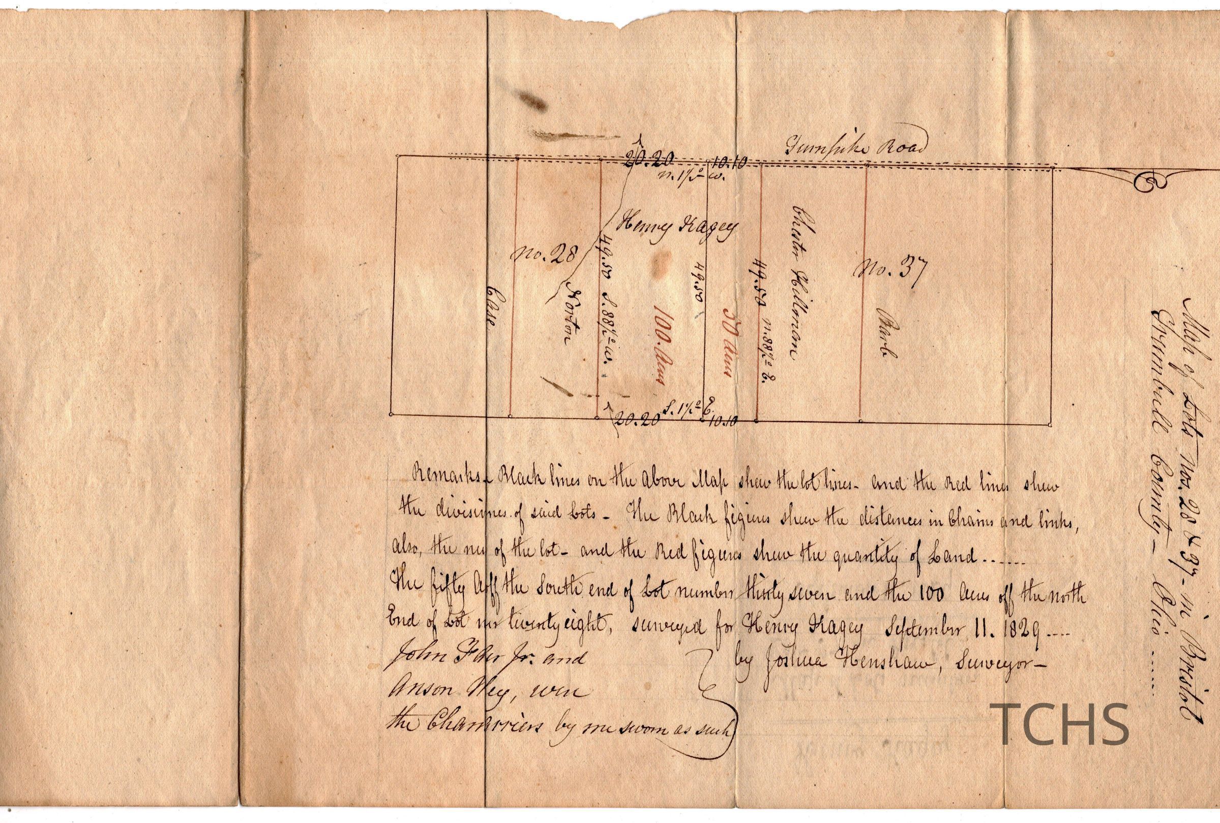 Map of lots28 + 37 in Bristol Township, Trumbull County Ohio. Lots appear to be owned by Henry Hagey.Collection