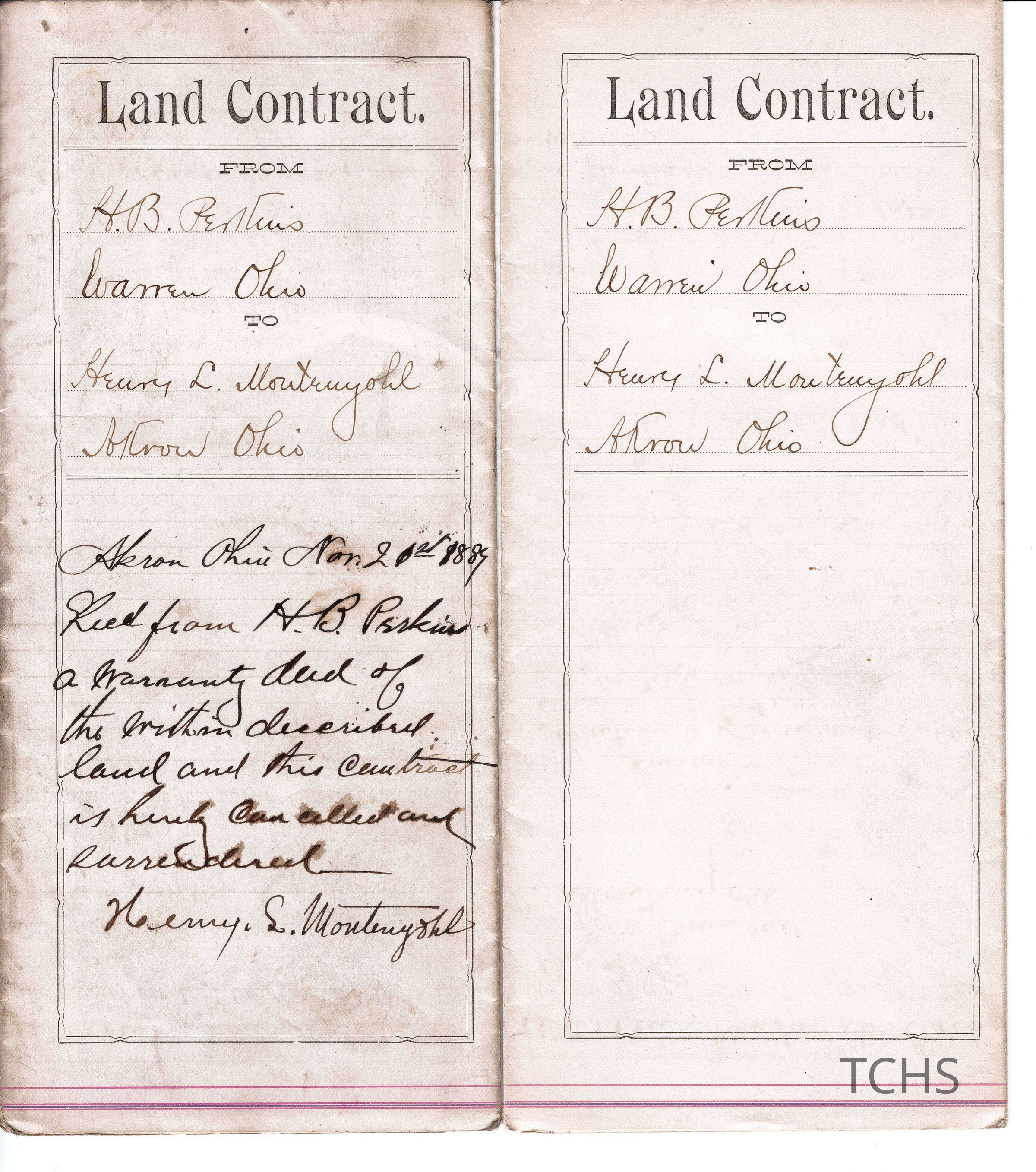 Records regarding land owned in Akron by the Perkins Family. Includes deeds, land contracts, maps, receipts, tax records, and a few letters.Acquisition