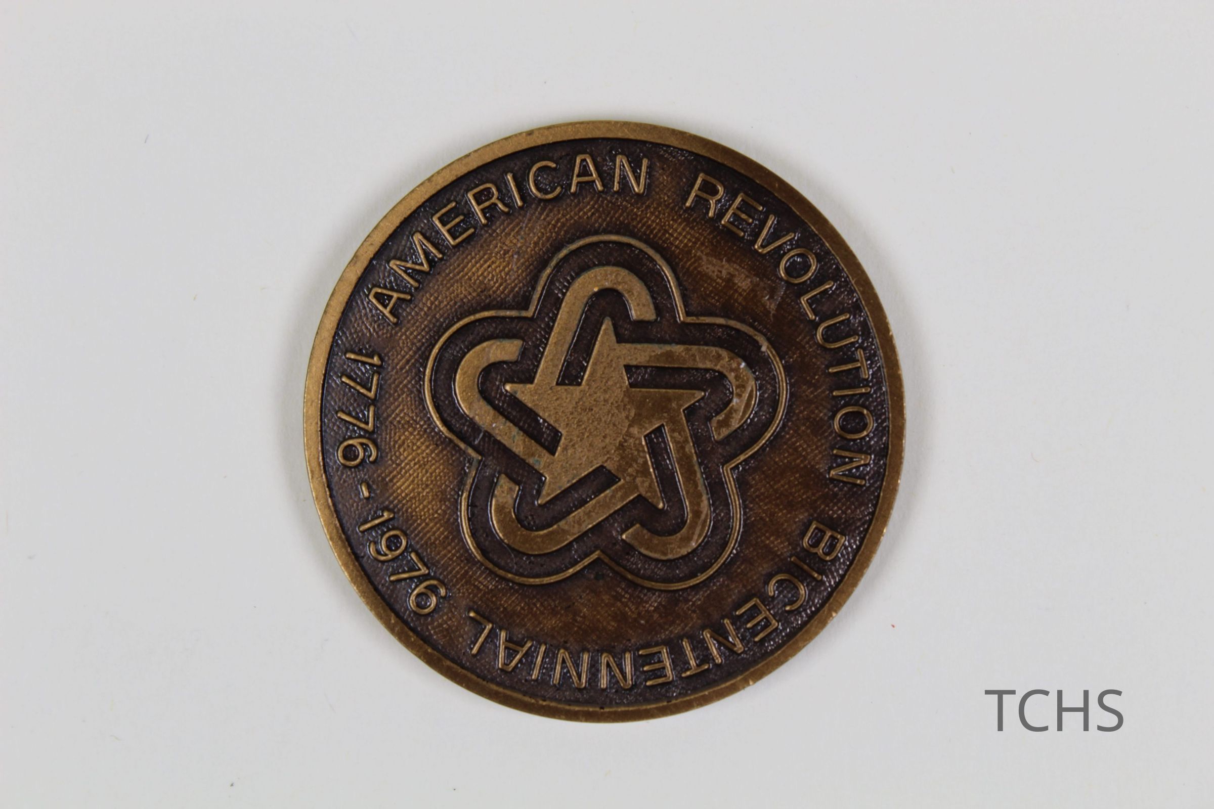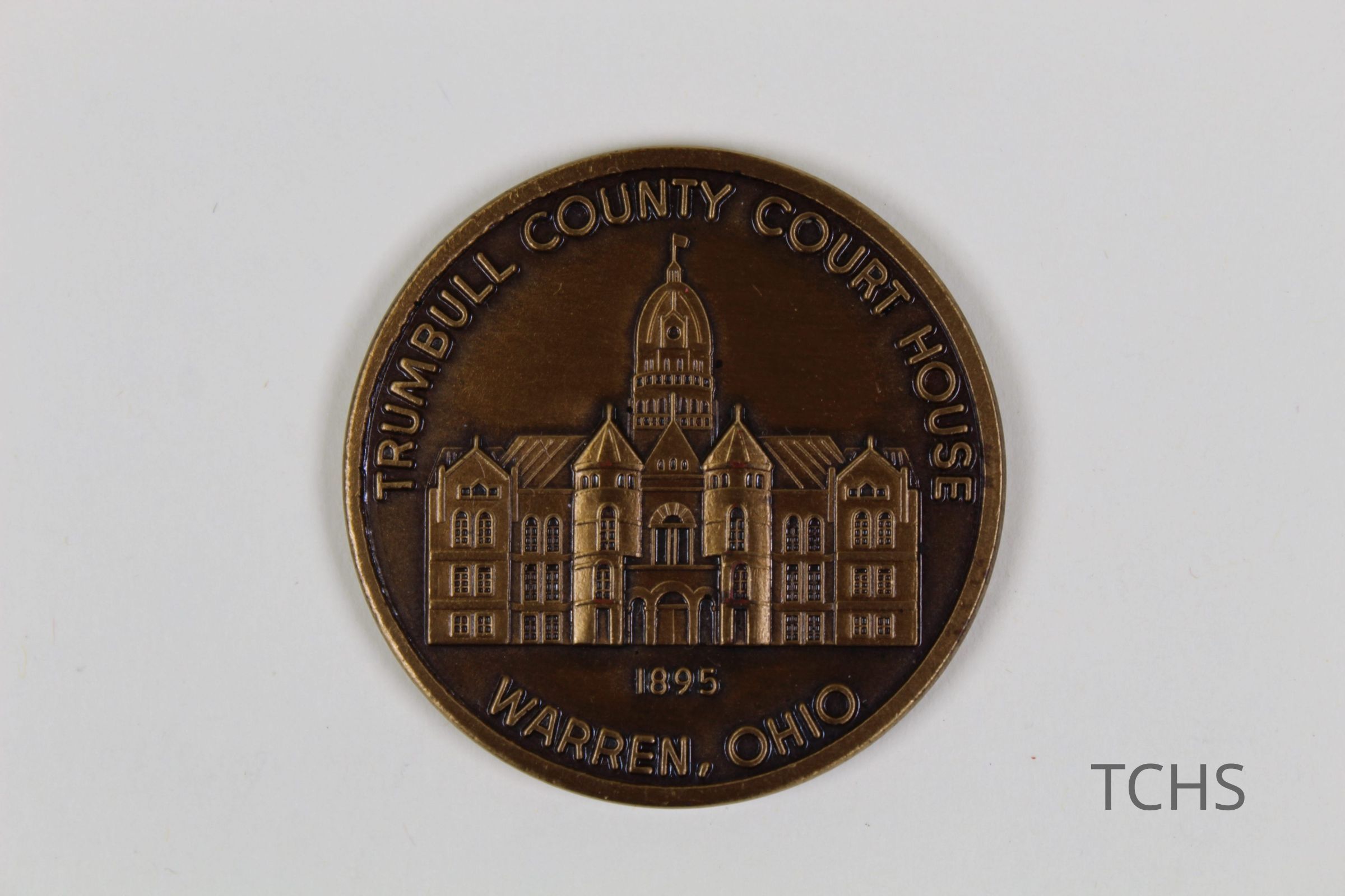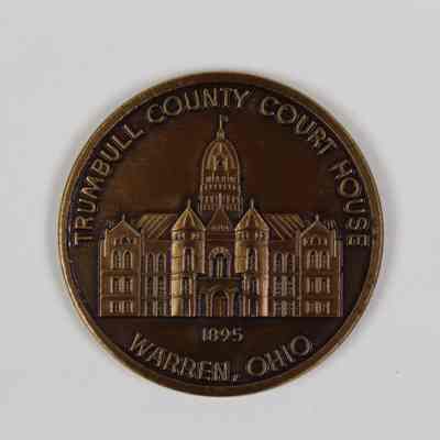 An American Revolution Bicentennial coin with bicentennial logo and Trumbull County Courthouse on respective sides.Acquisition