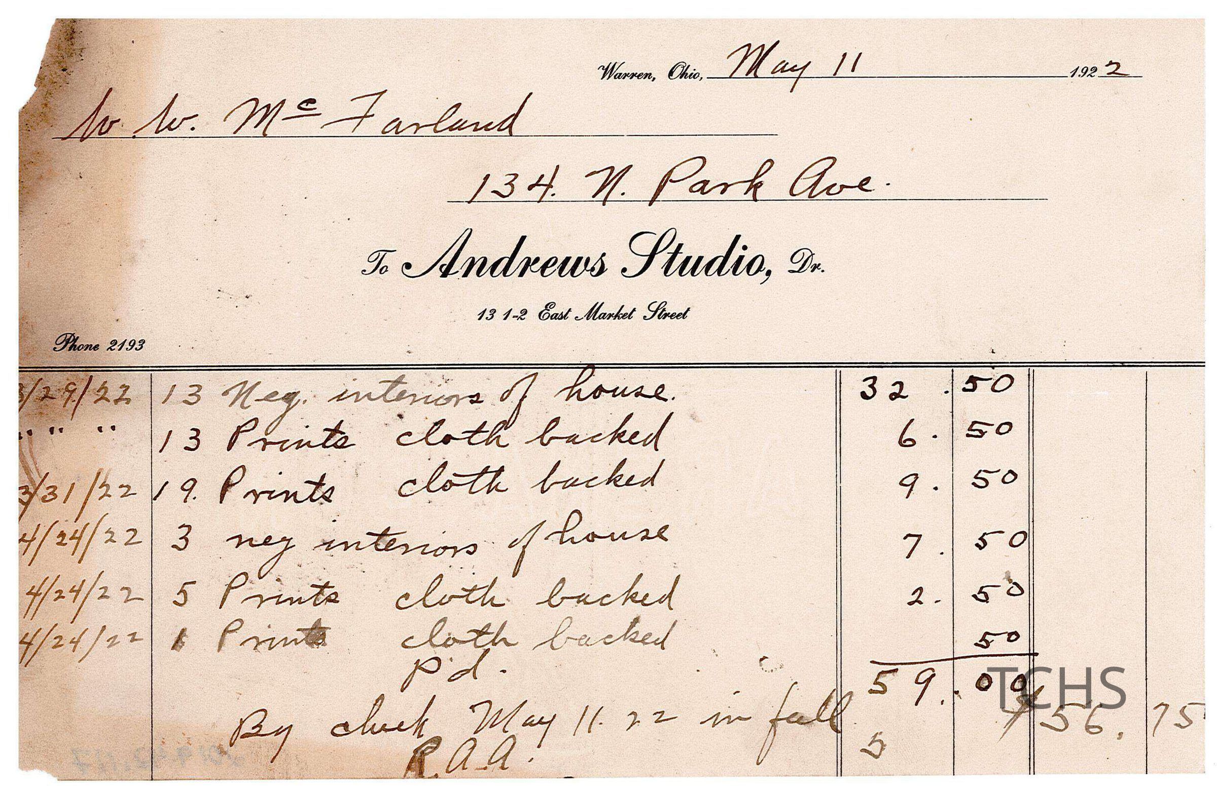 Receipt from Andrews Studio