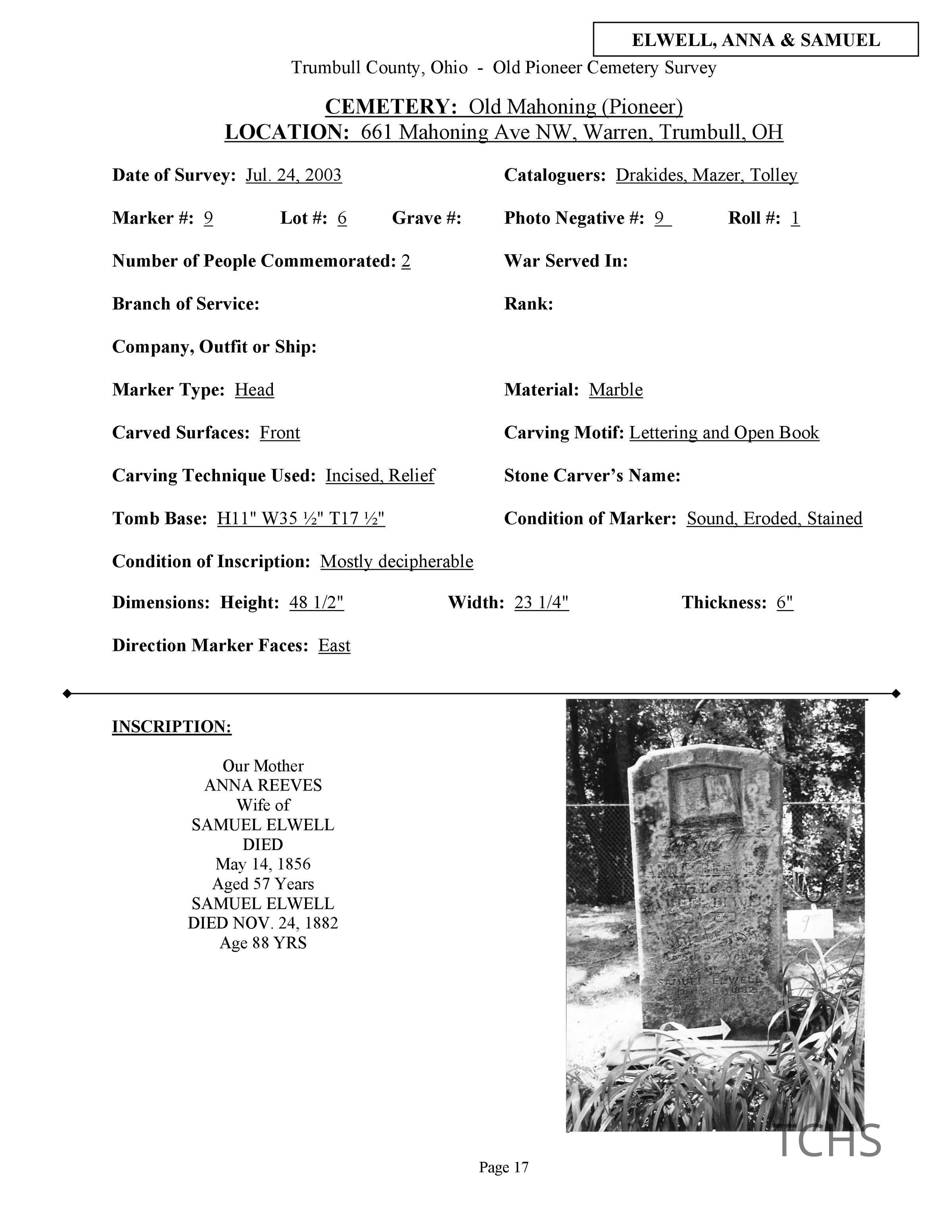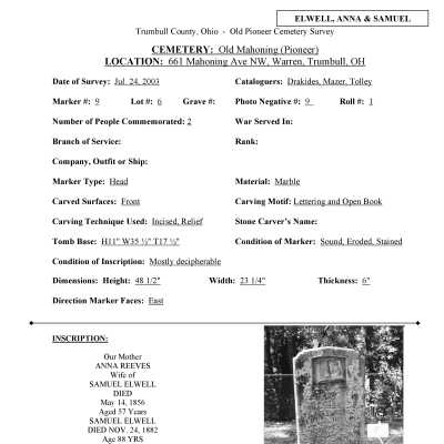 This page was compiled by the Trumbull County Genealogical Society during a 2002-2004 survey of Old Mahoning Cemetery.Creator