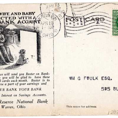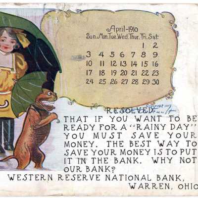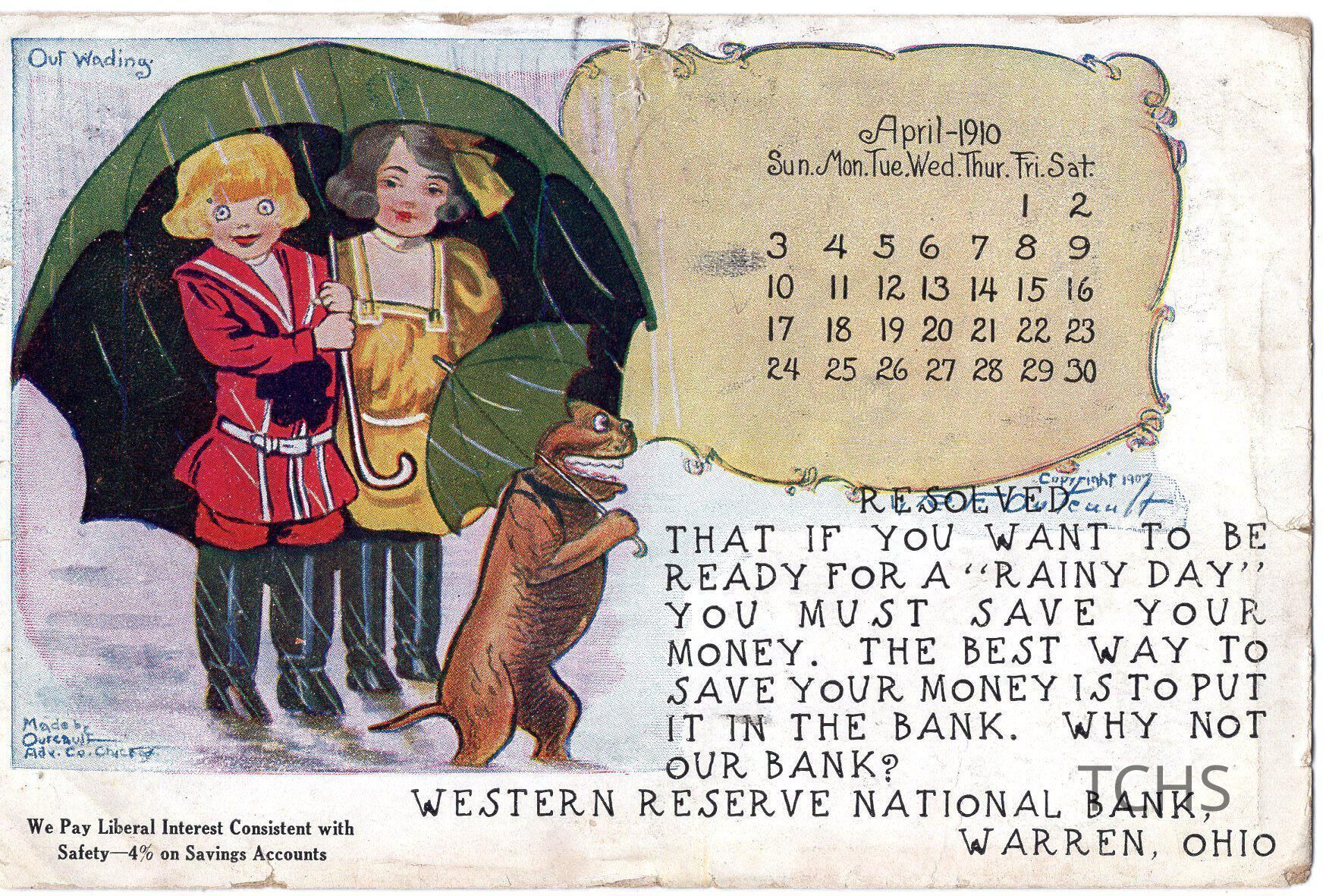 Western Reserve National Bank April 1910 calendar. Addressed to William G. Foulk, Esq.Collection