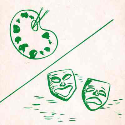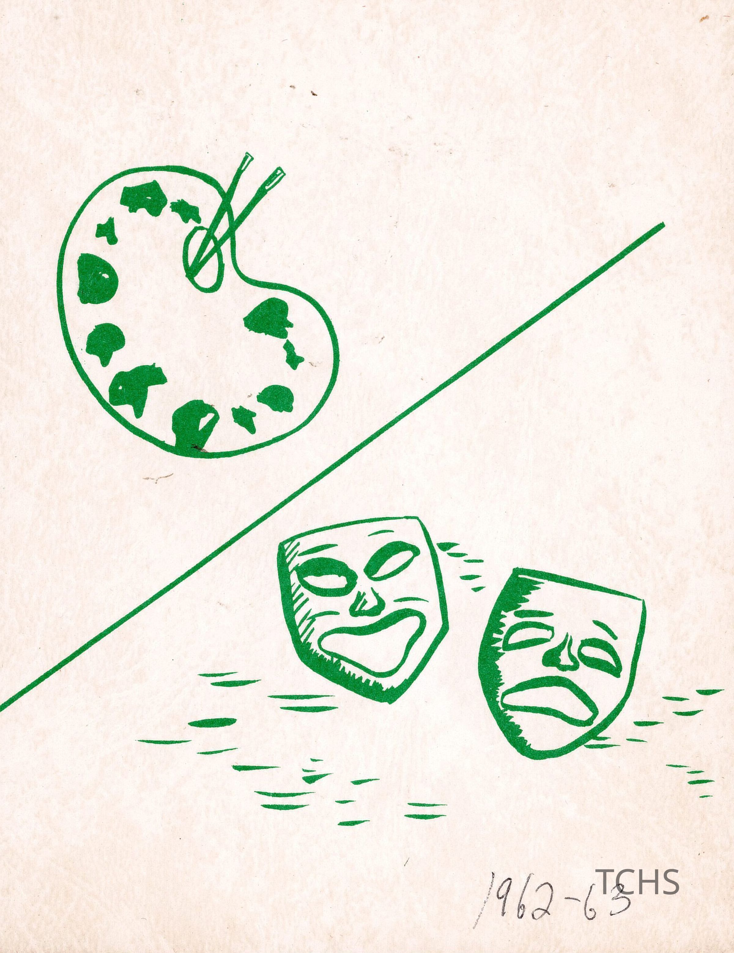 Arts and Drama Club of Warren 45th annual program for 1962-1963. Handmade program featuring a paint pallet and brushes along with 2 white masks all in green.Collection
