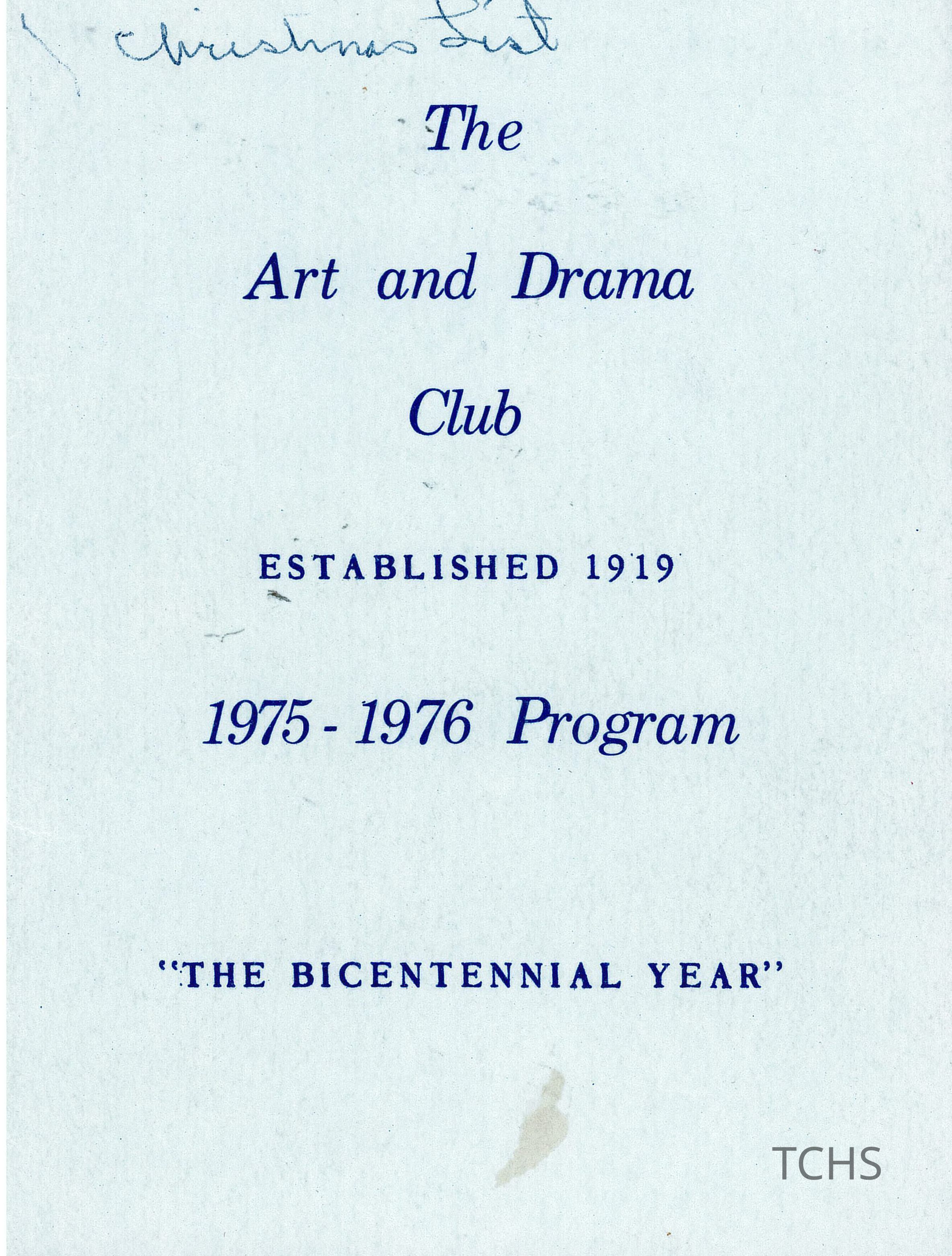 Arts and Drama Club of Warren annual program for 1975-1976--The Bicentennial Year