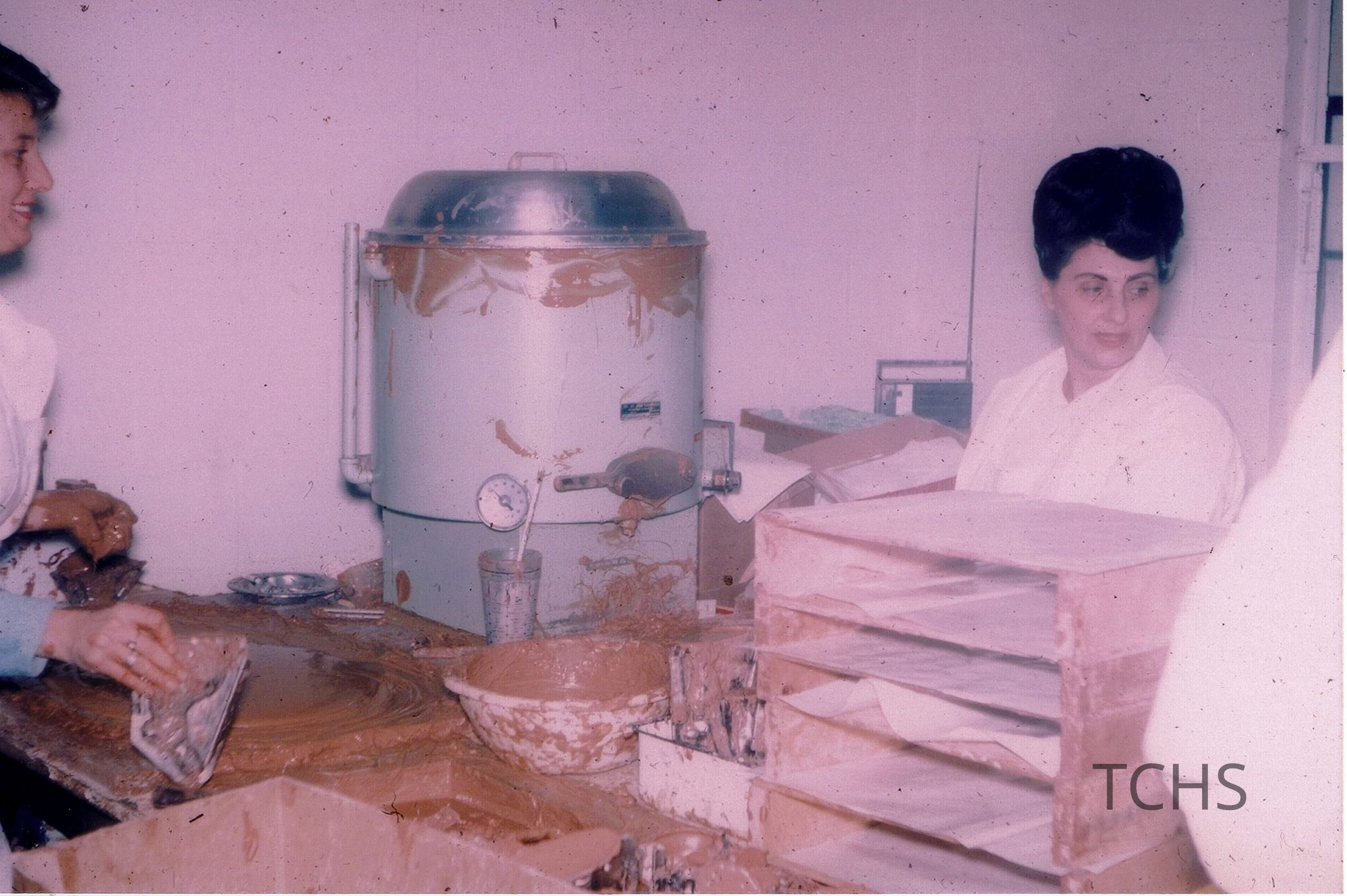 Dee Capan and Ann Urda making chocolate, no date.Acquisition