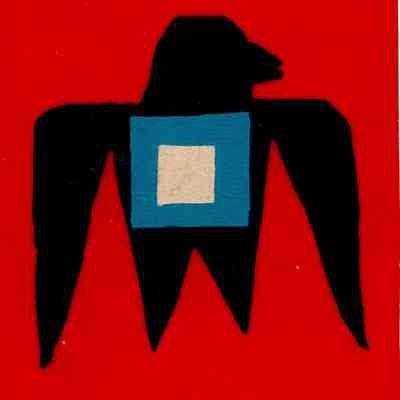 Arts and Drama Club of Warren annual program for 1979-1980. Handmade program on red paper featuring a felt bird like design in black felt with a blue and white felt square on its chest.Collection