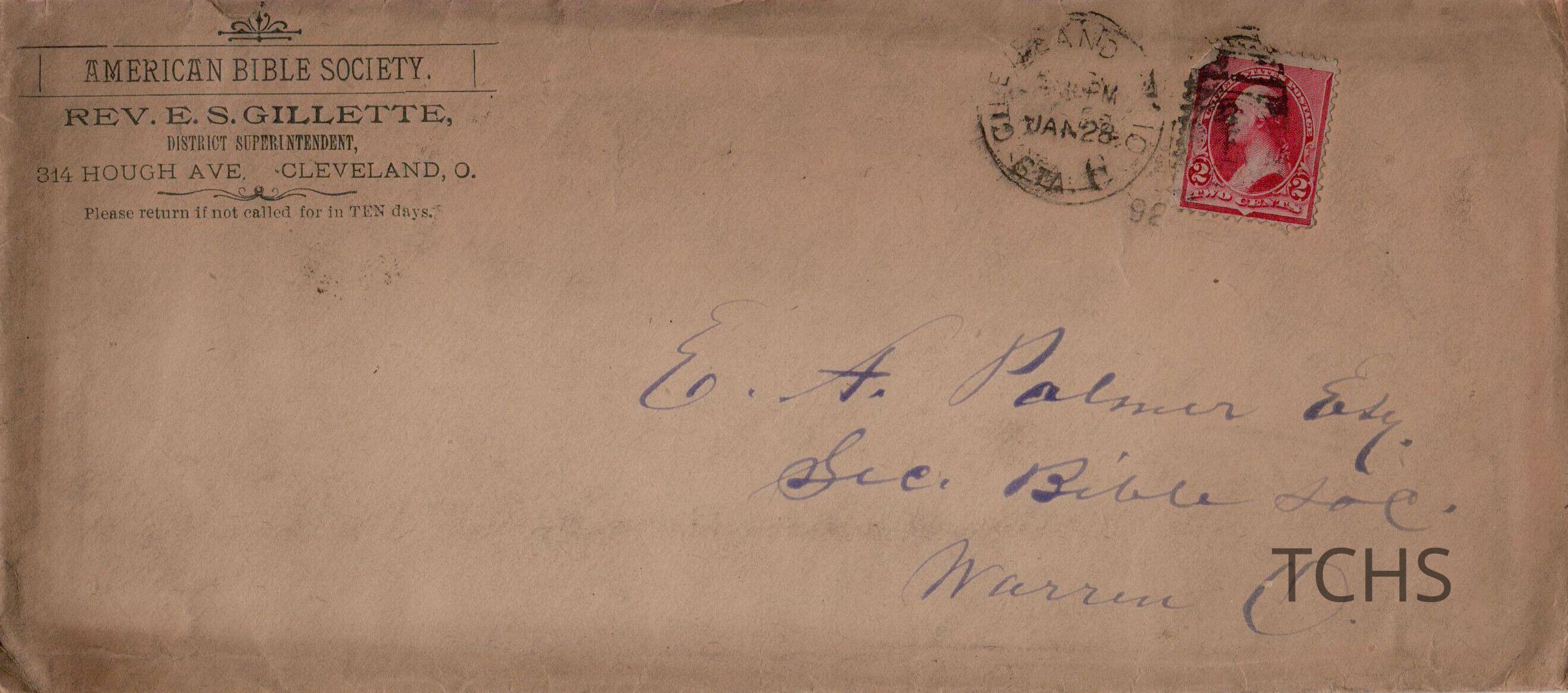Envelope addressed to E. A. Palmer from E. S. Gillette