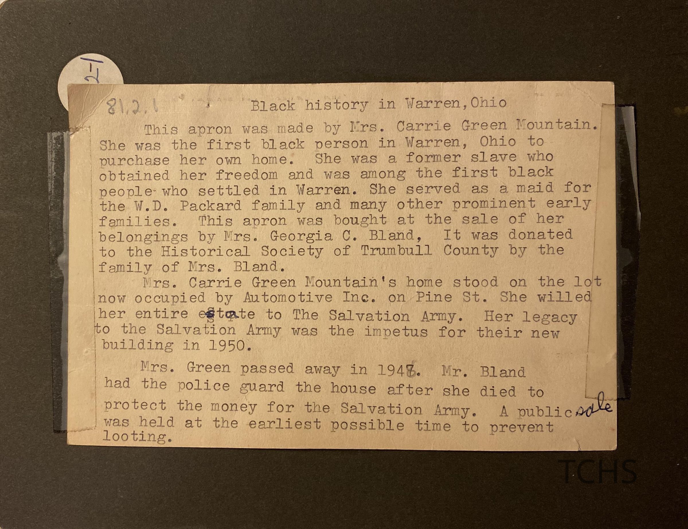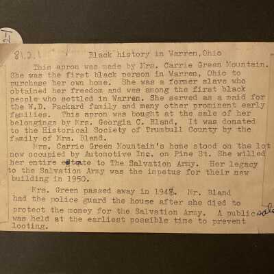Photo of Carrie Green Mountain and history notes on the backCollection