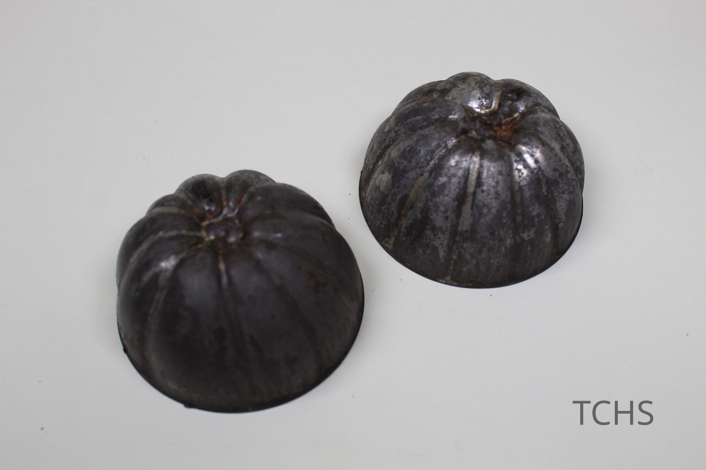 Two tin dome shaped molds