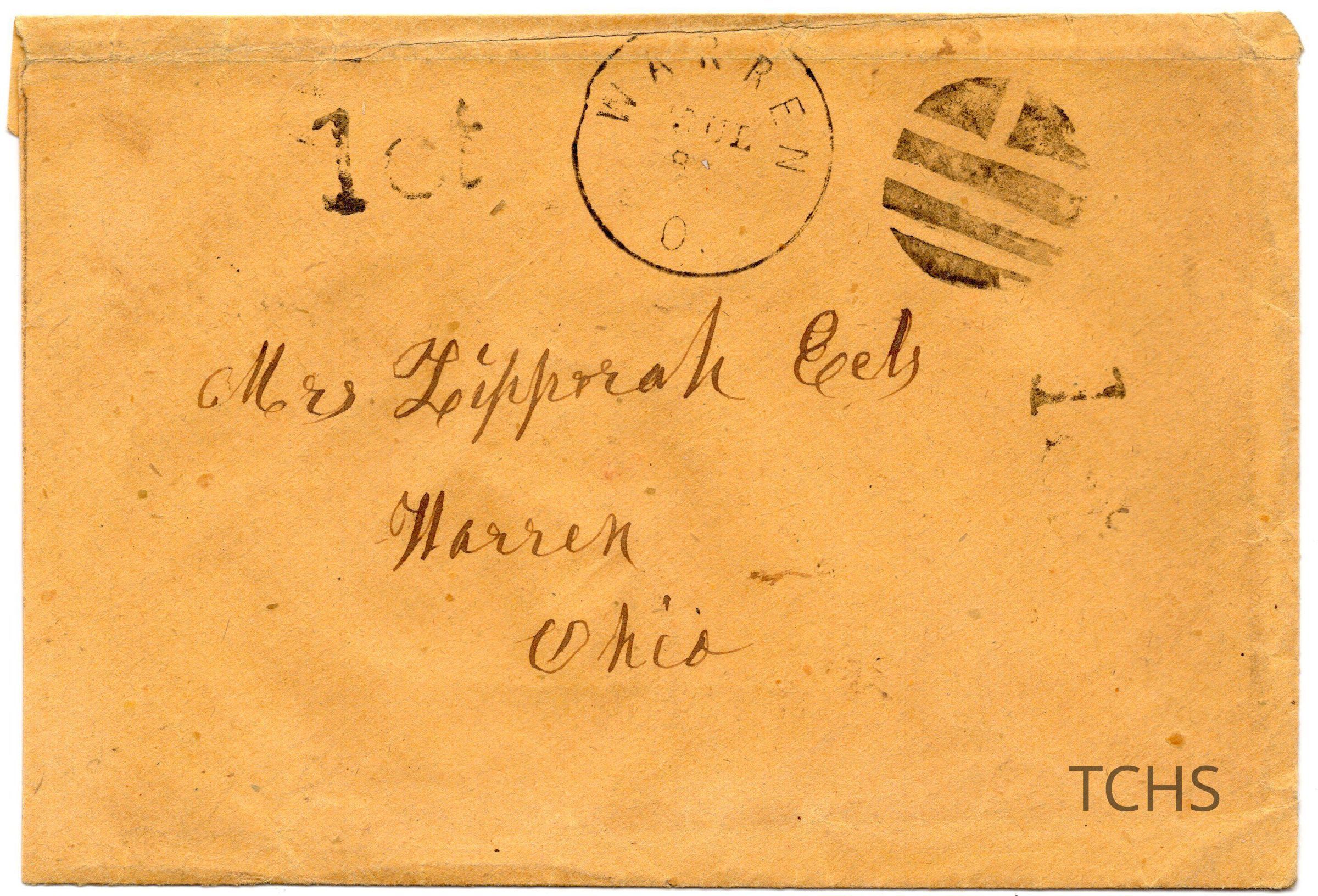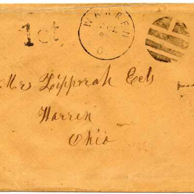 Envelope addressed to Mrs. Lipporah/Lifforah/Zipporah (name hard to read) Eels of Warren. Sent from Warren, stamped "1 ct". Date unknown.Collection