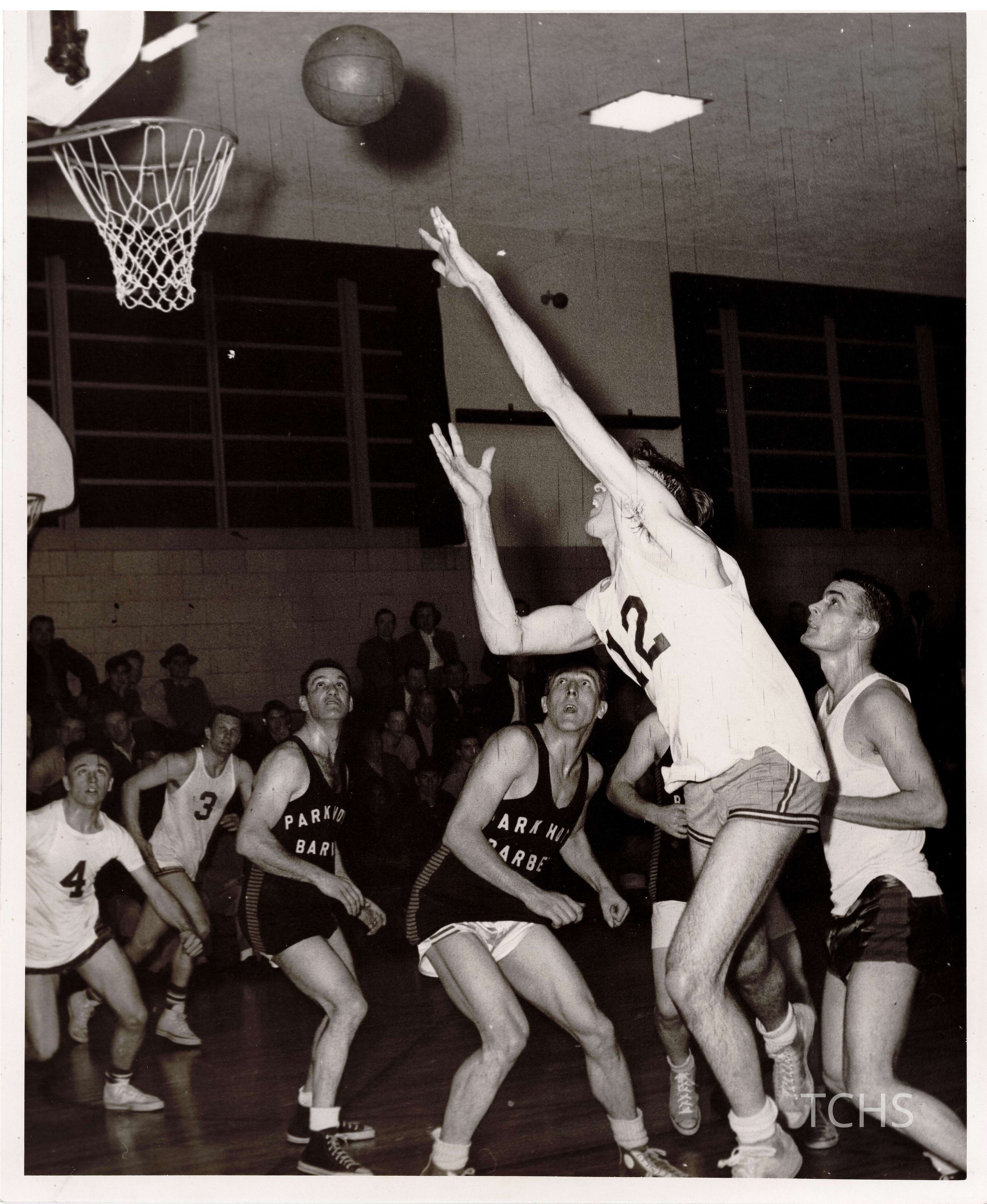 Basketball game between the Park Hotel Barbers and an unidentified team. Undated.