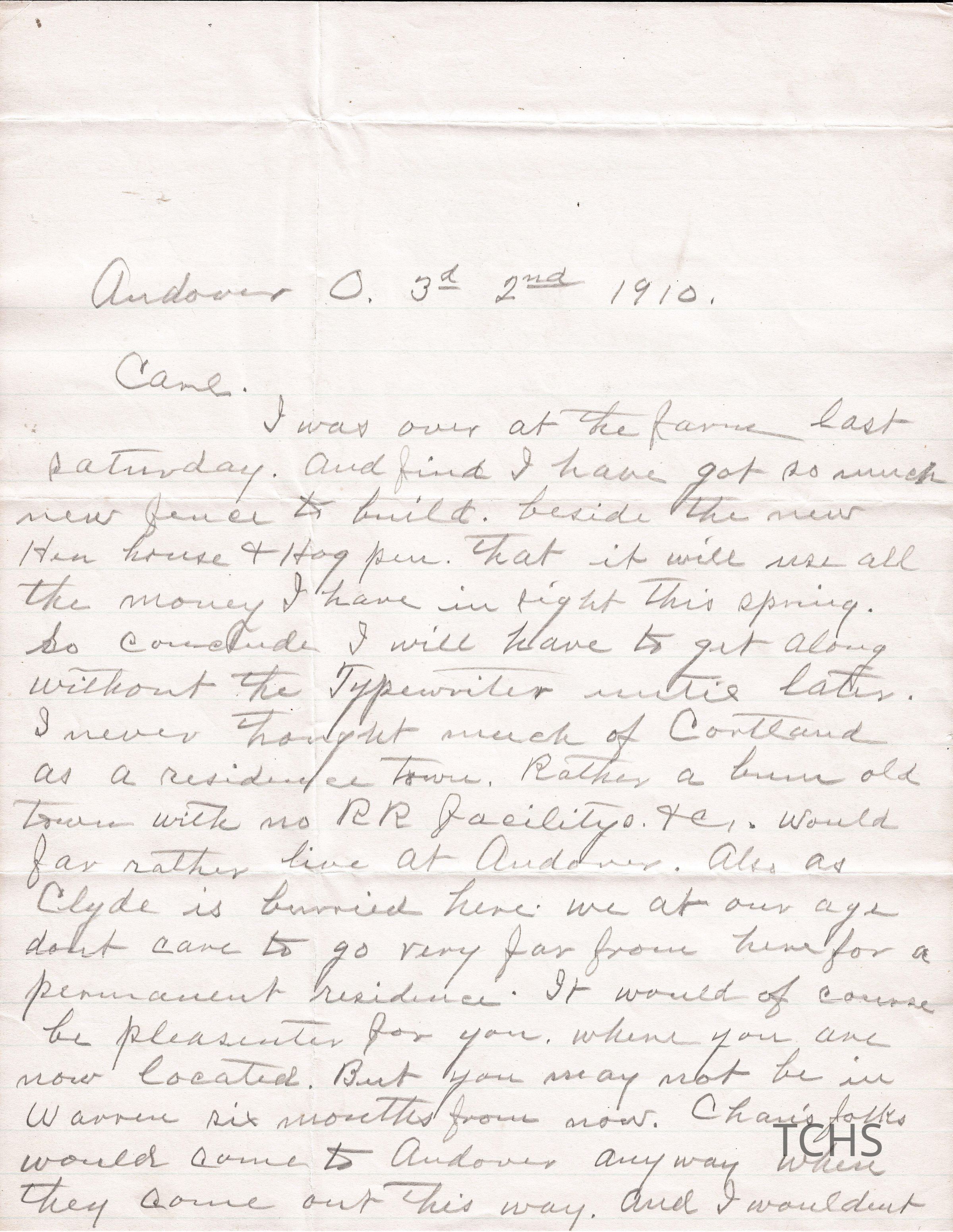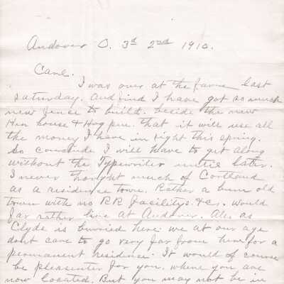 From A.W. Griffing to his son A.C. Griffing, March 2nd (?), 1910Acquisition