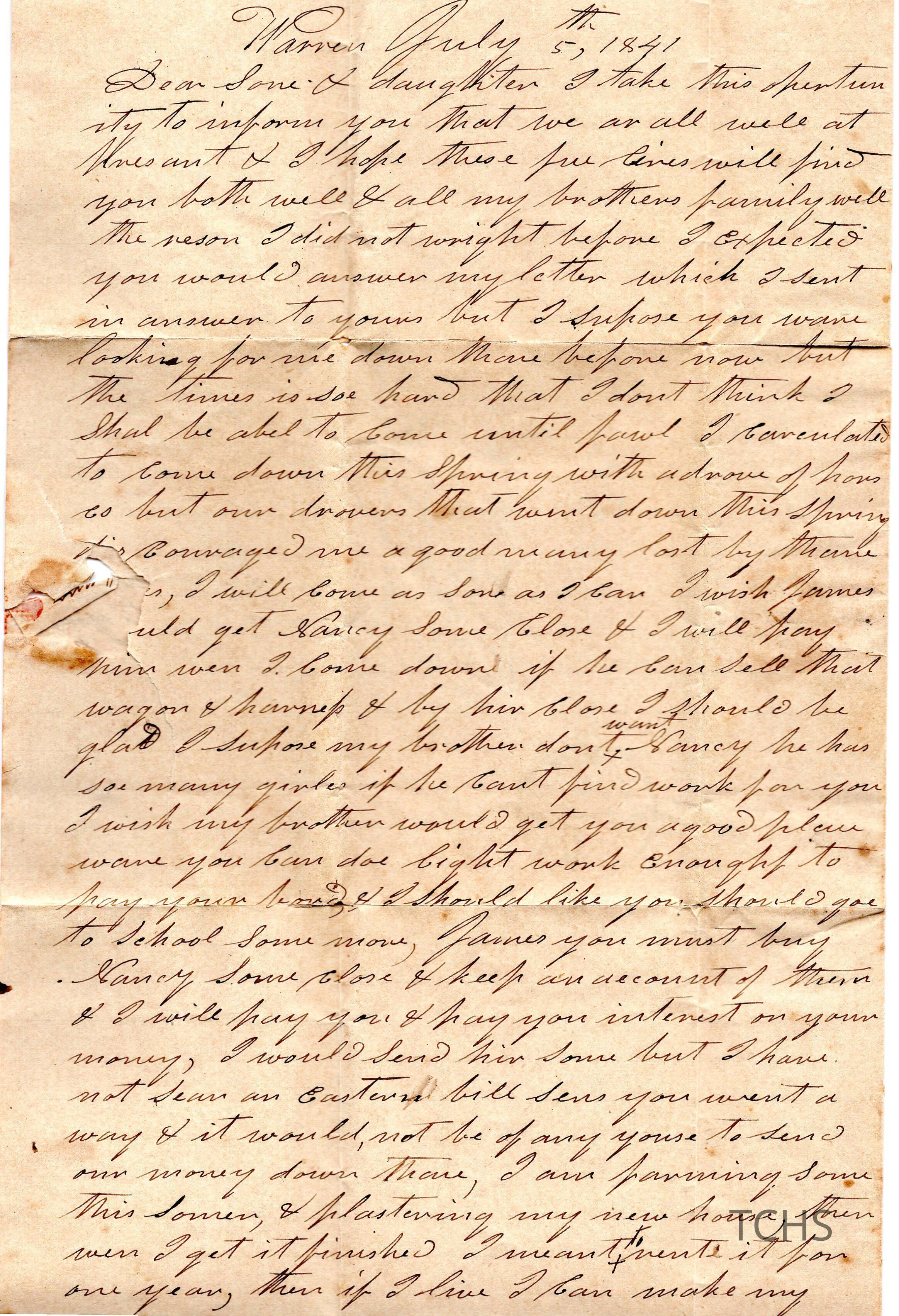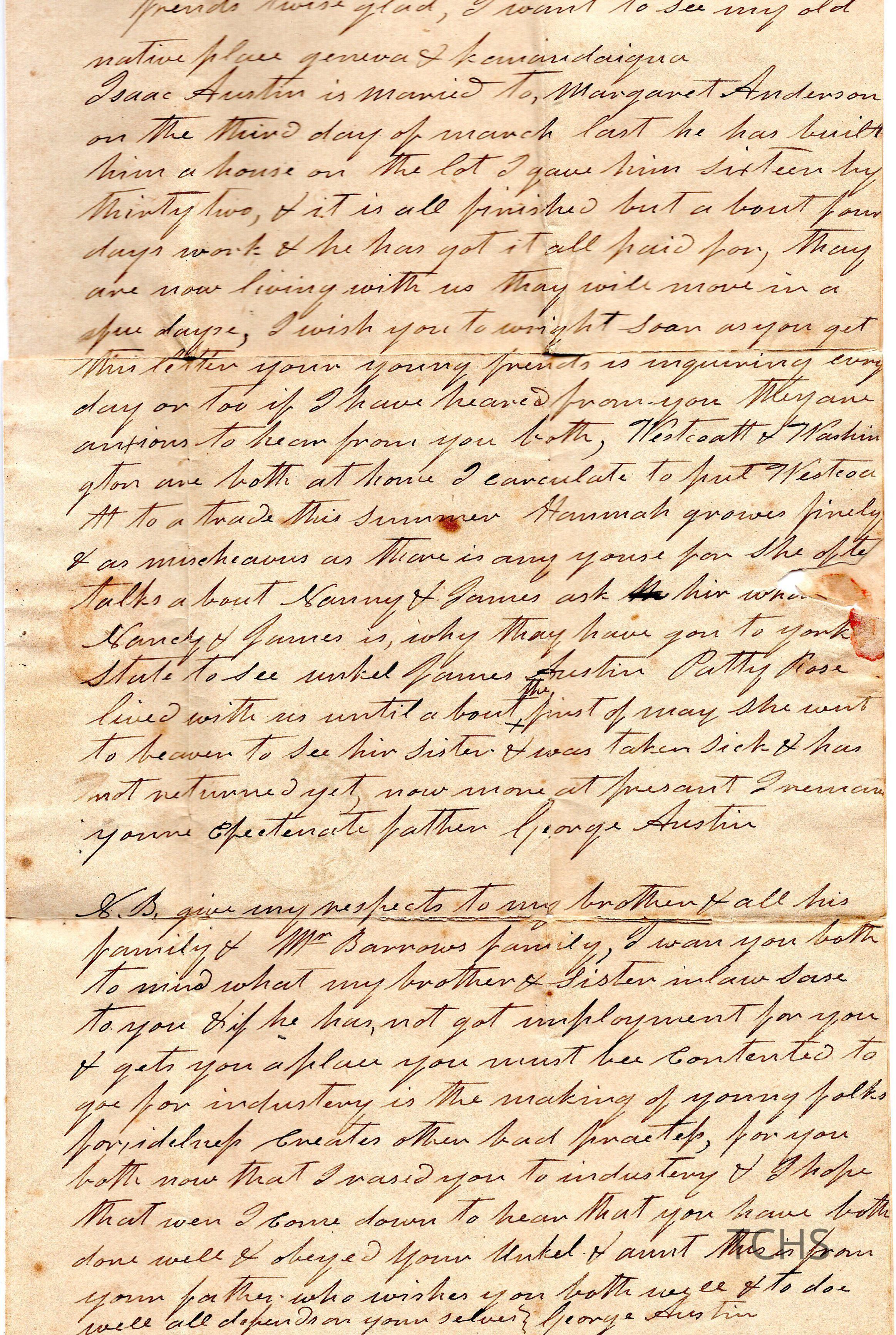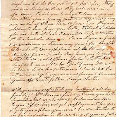 Letter written to Nancy Belden and her brother James Austin from their father George Austin.