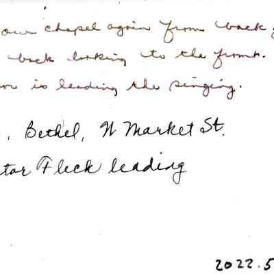 Pastor Fleck leading worship at the front of the Bethel Baptist Church, W. Market St., Warren, Ohio.Acquisition