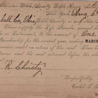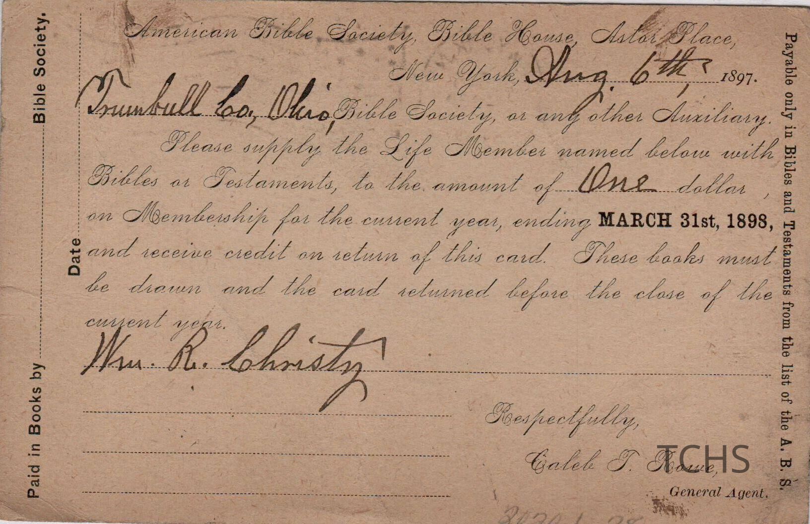 Membership card for Wm. R. Christy from the Trumbull County Bible SocietyLocation