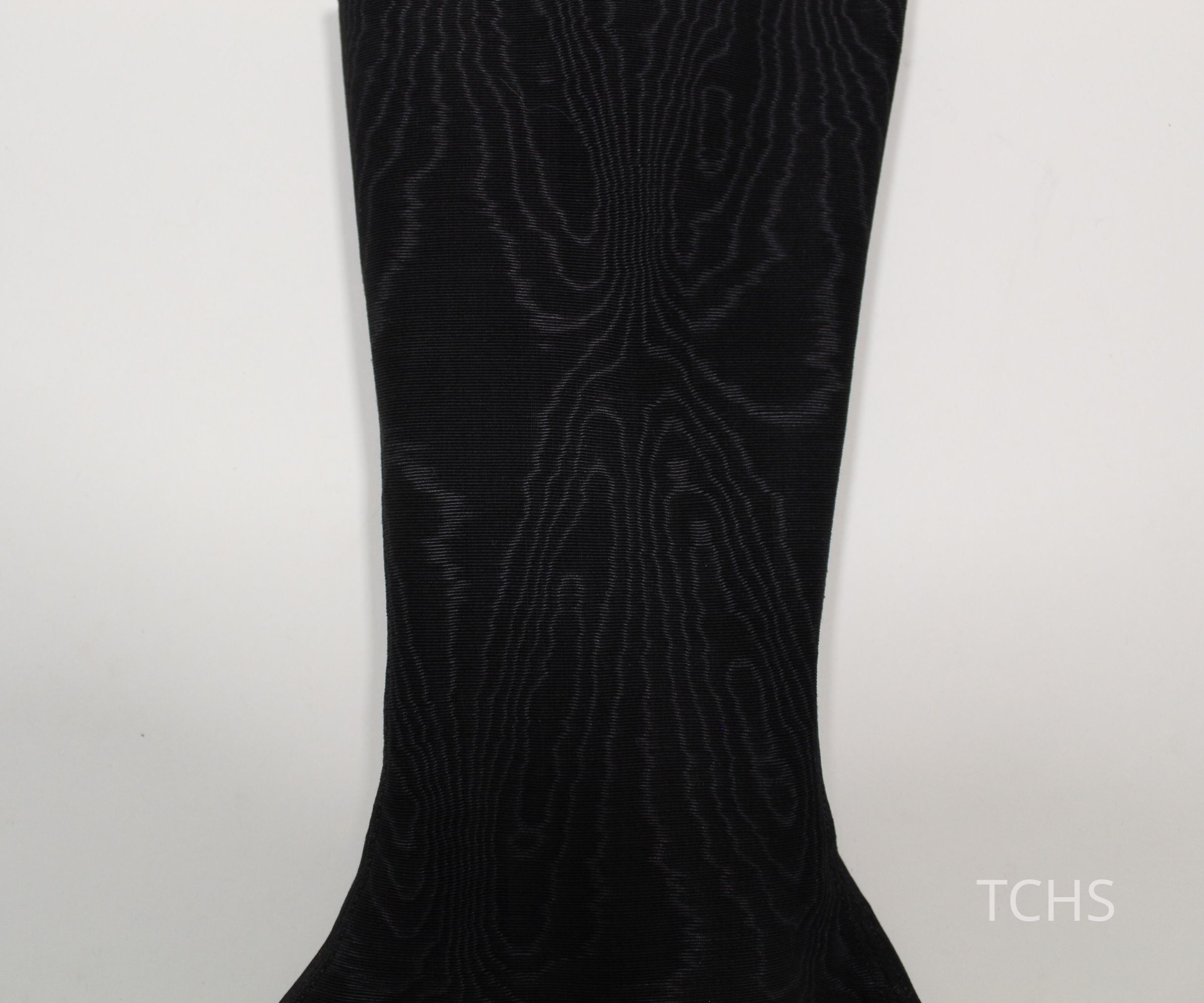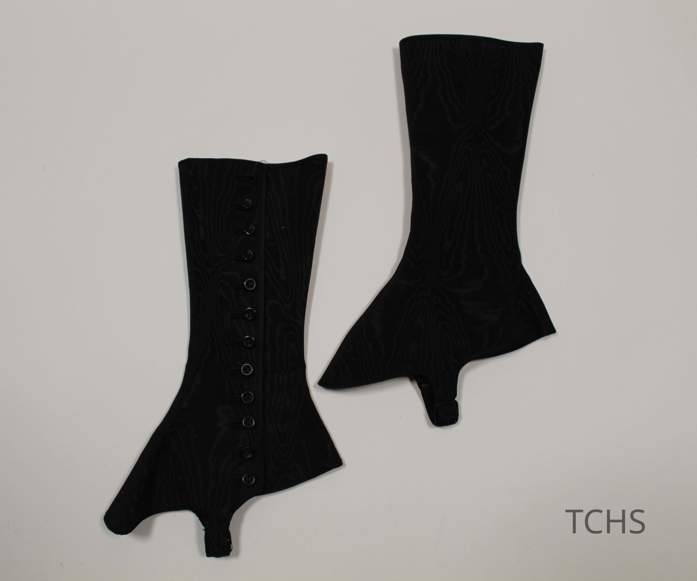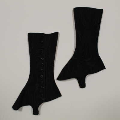 Black taffeta spats with black buttons.