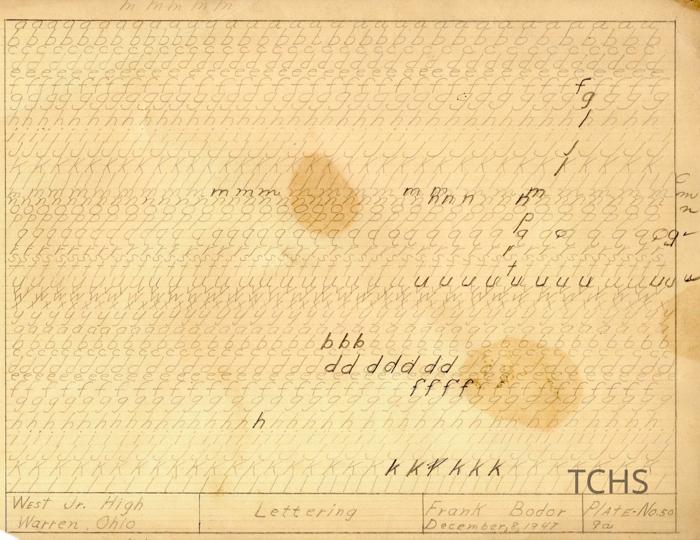 Frank Bodor lettering, likely for a West Jr. High class, in December, 8, 1947.Acquisition