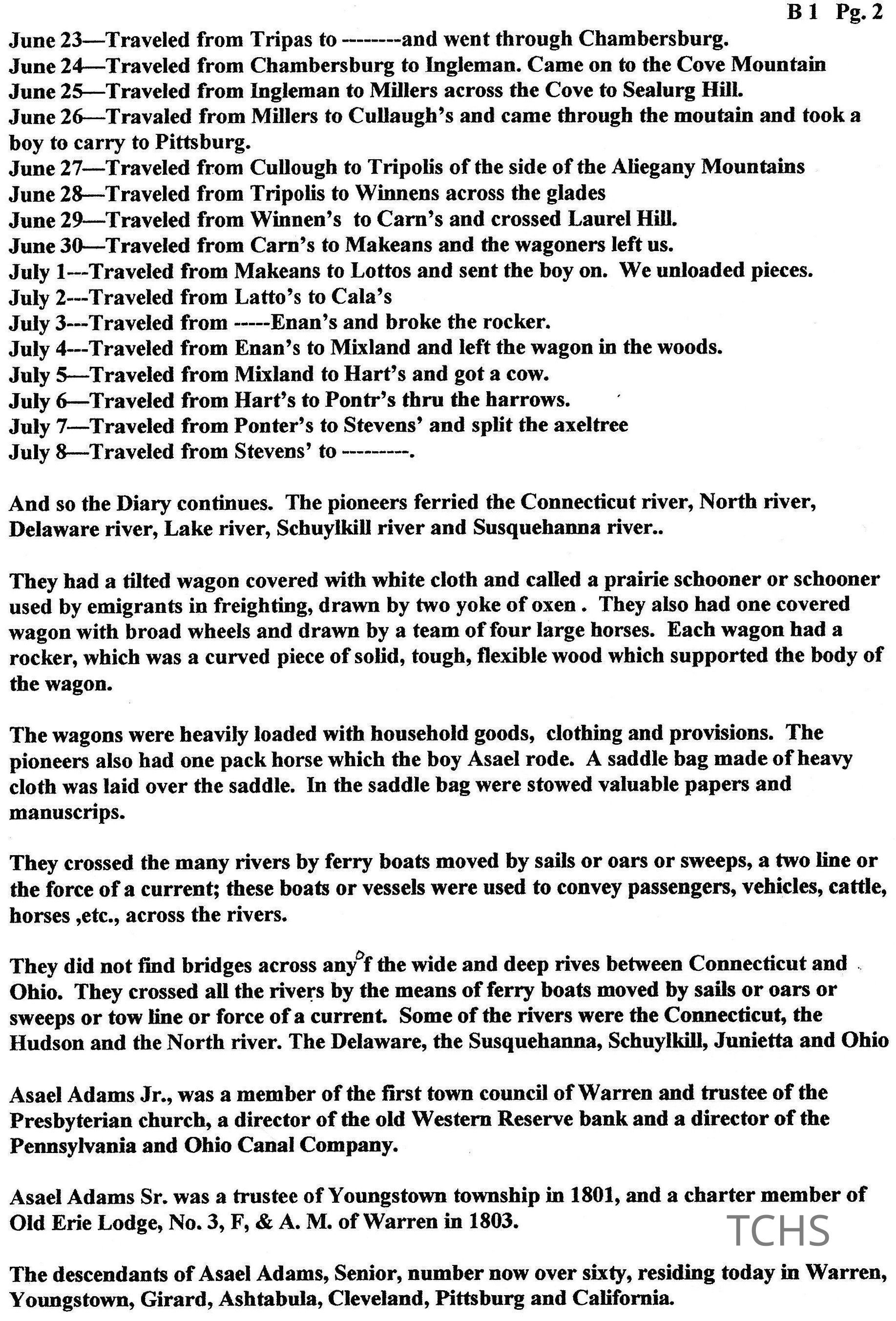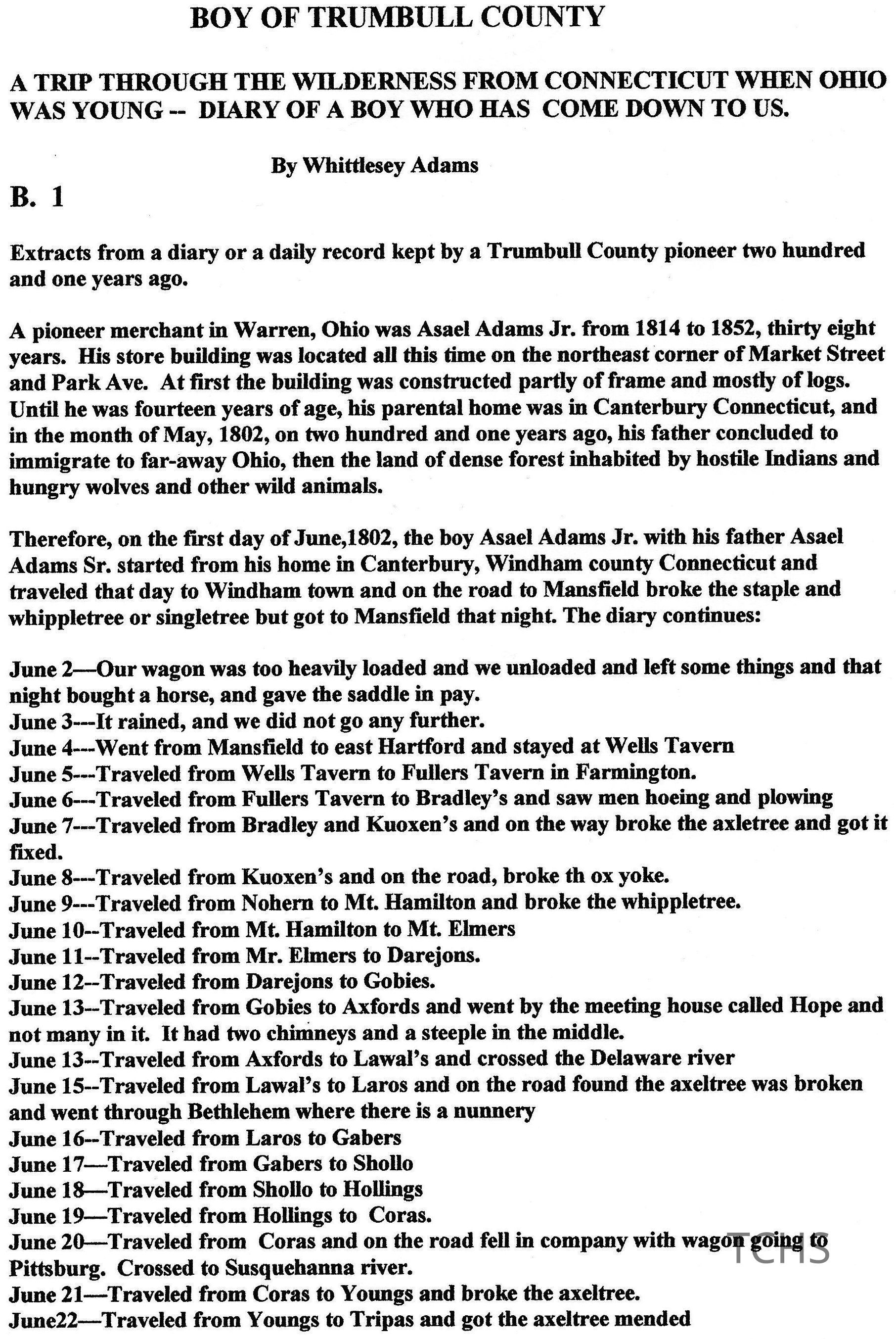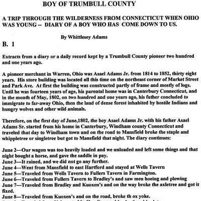 Copy of extracts of a book about Asael Adams' trip through wilderness from Connecticut to OhioCollection
