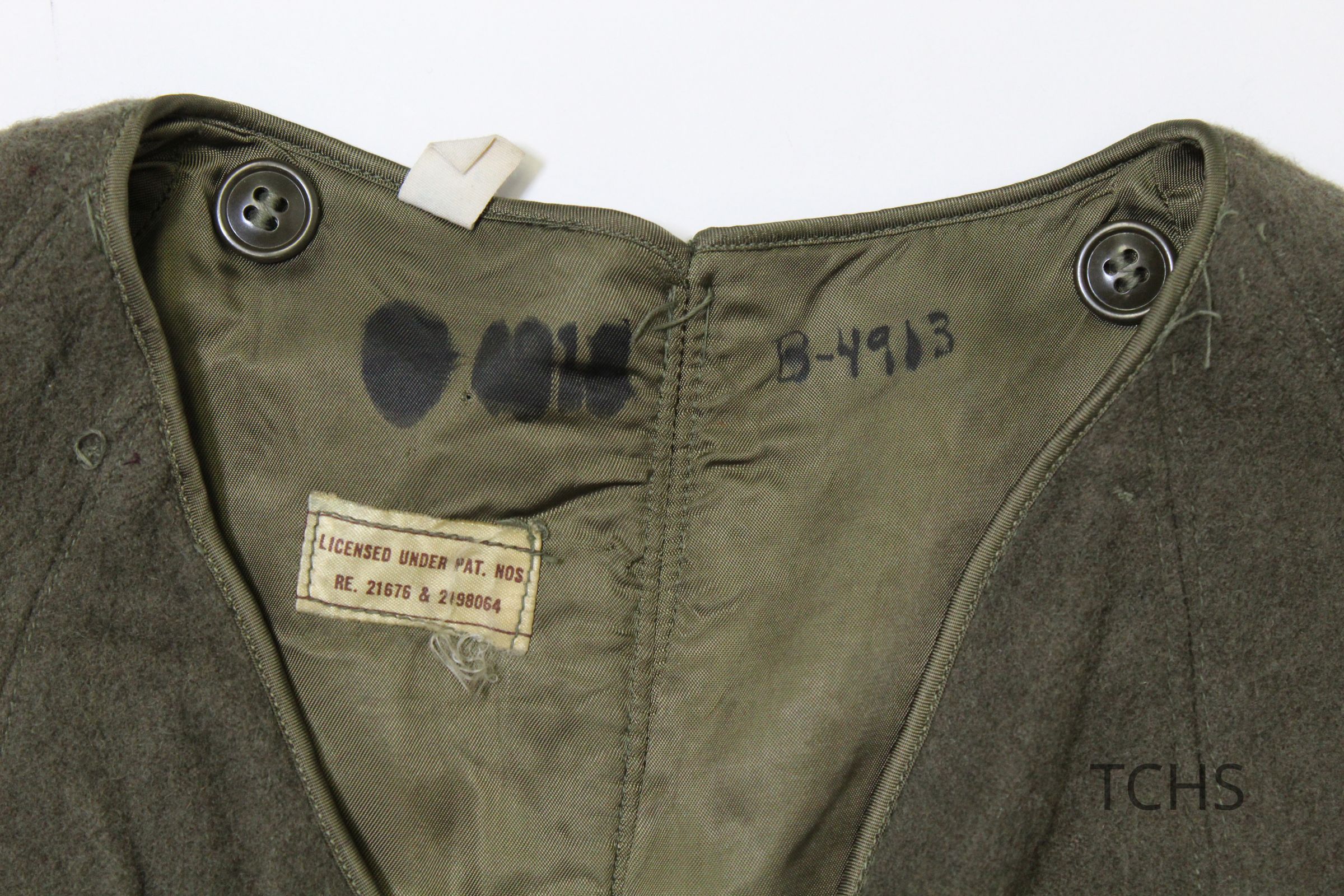 Korean War green uniform coat belonging to D. Boye. B-4913 is written on the inside of the collar.Acquisition