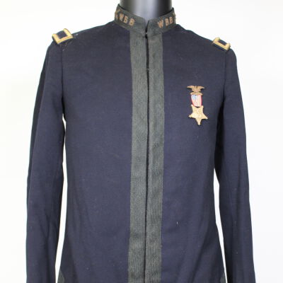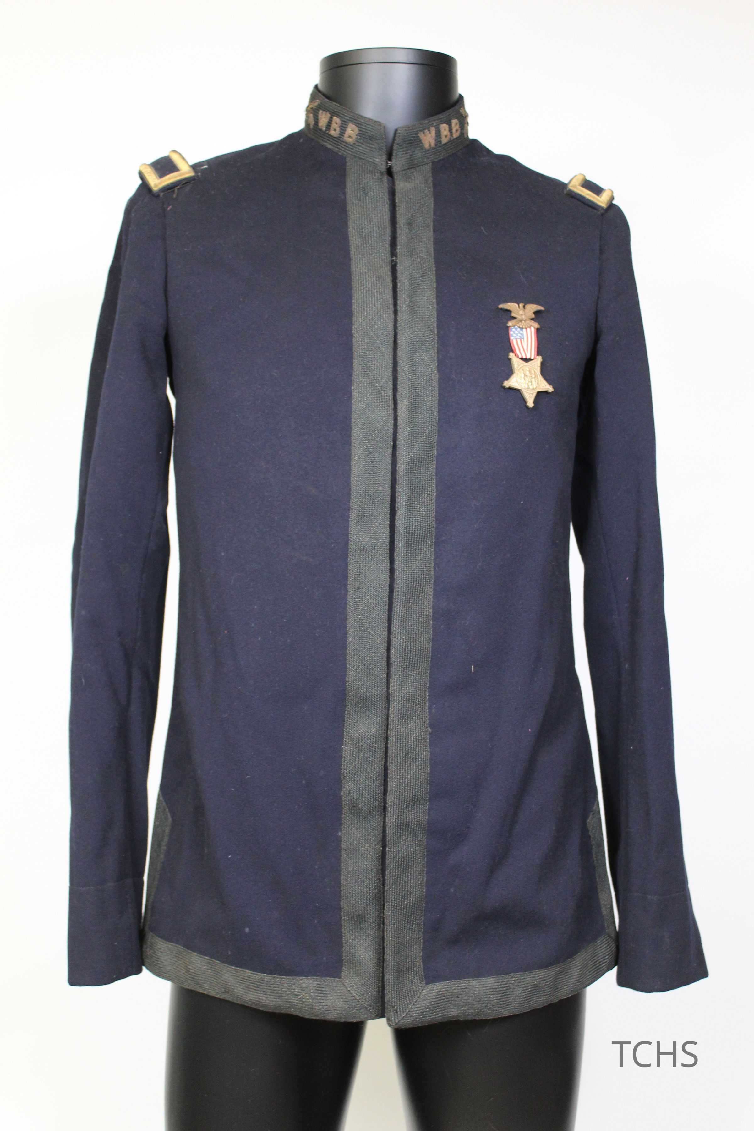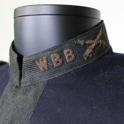A Boys Brigade Coat, 1904, with insignia and W.B.B., standing for Warren Boys Brigade, embroidered on the collar. There is also a Boys Brigade pin on the chest.Acquisition