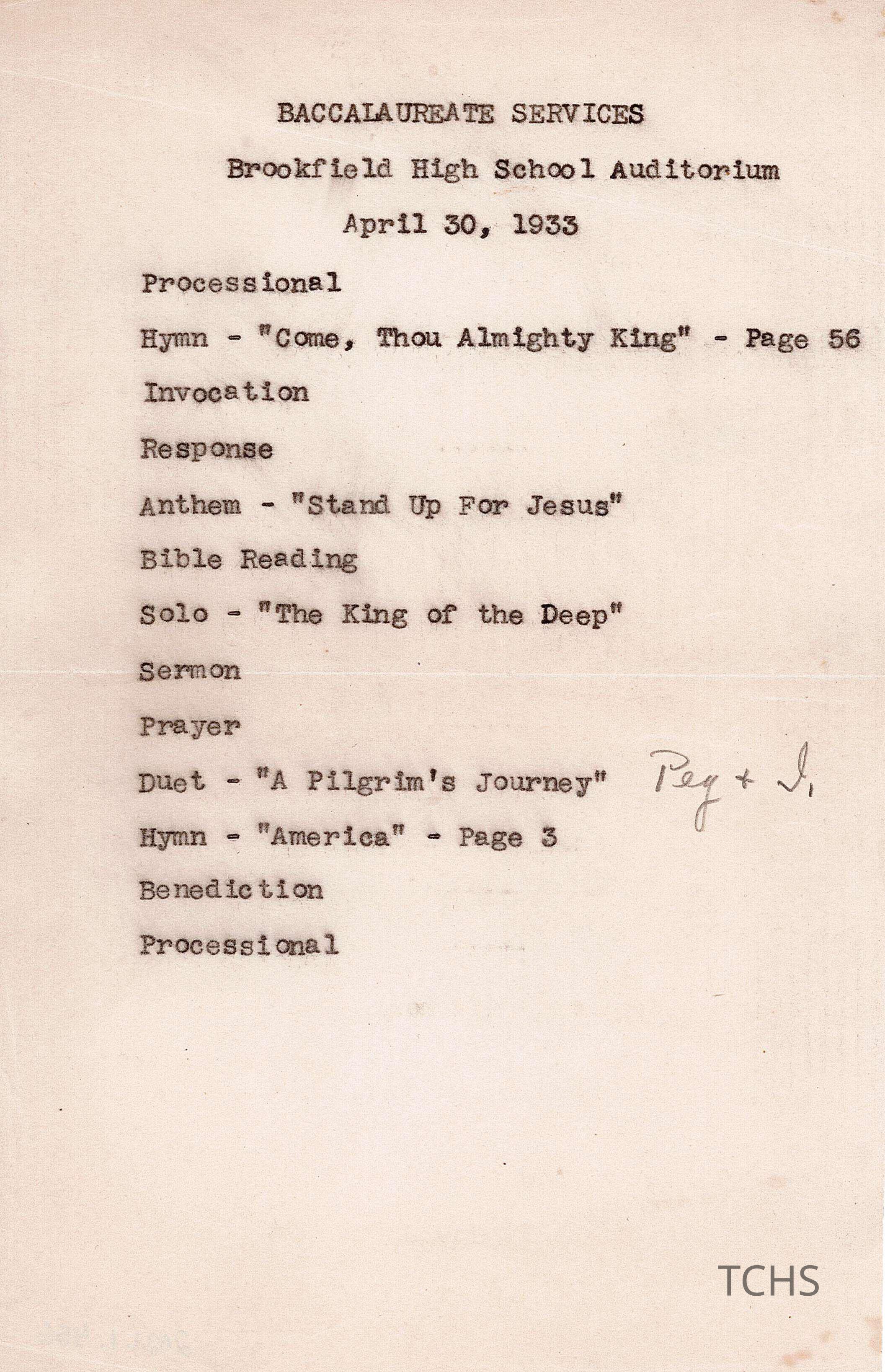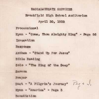Brookfield Baccalaureate, 1933Entry/Object ID
