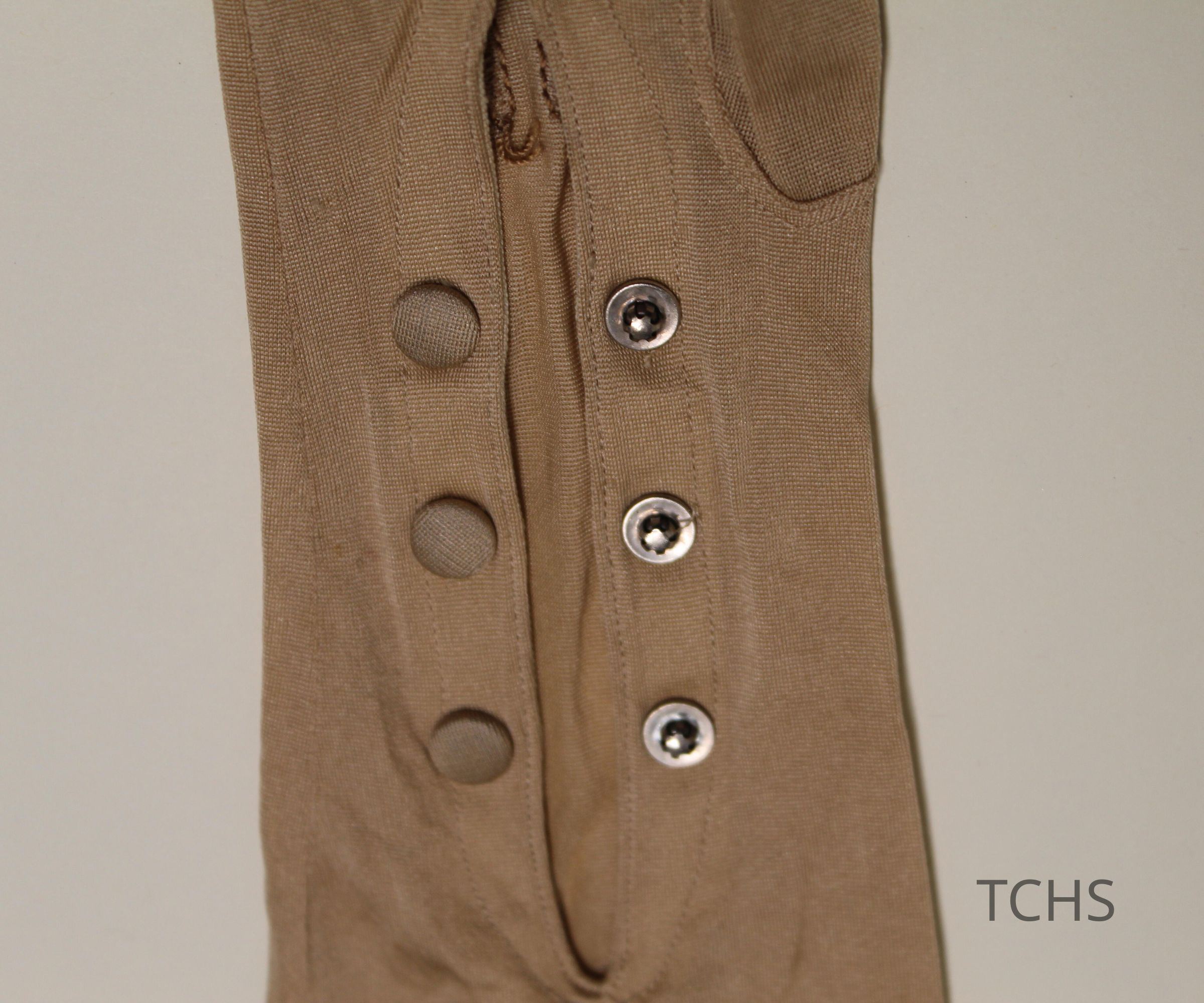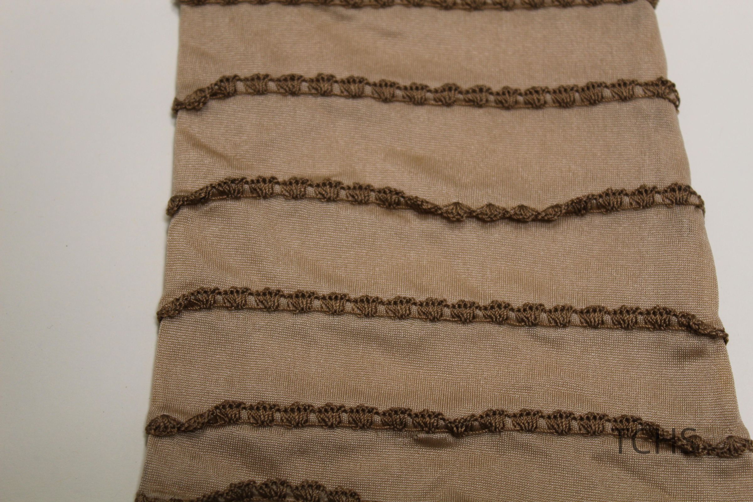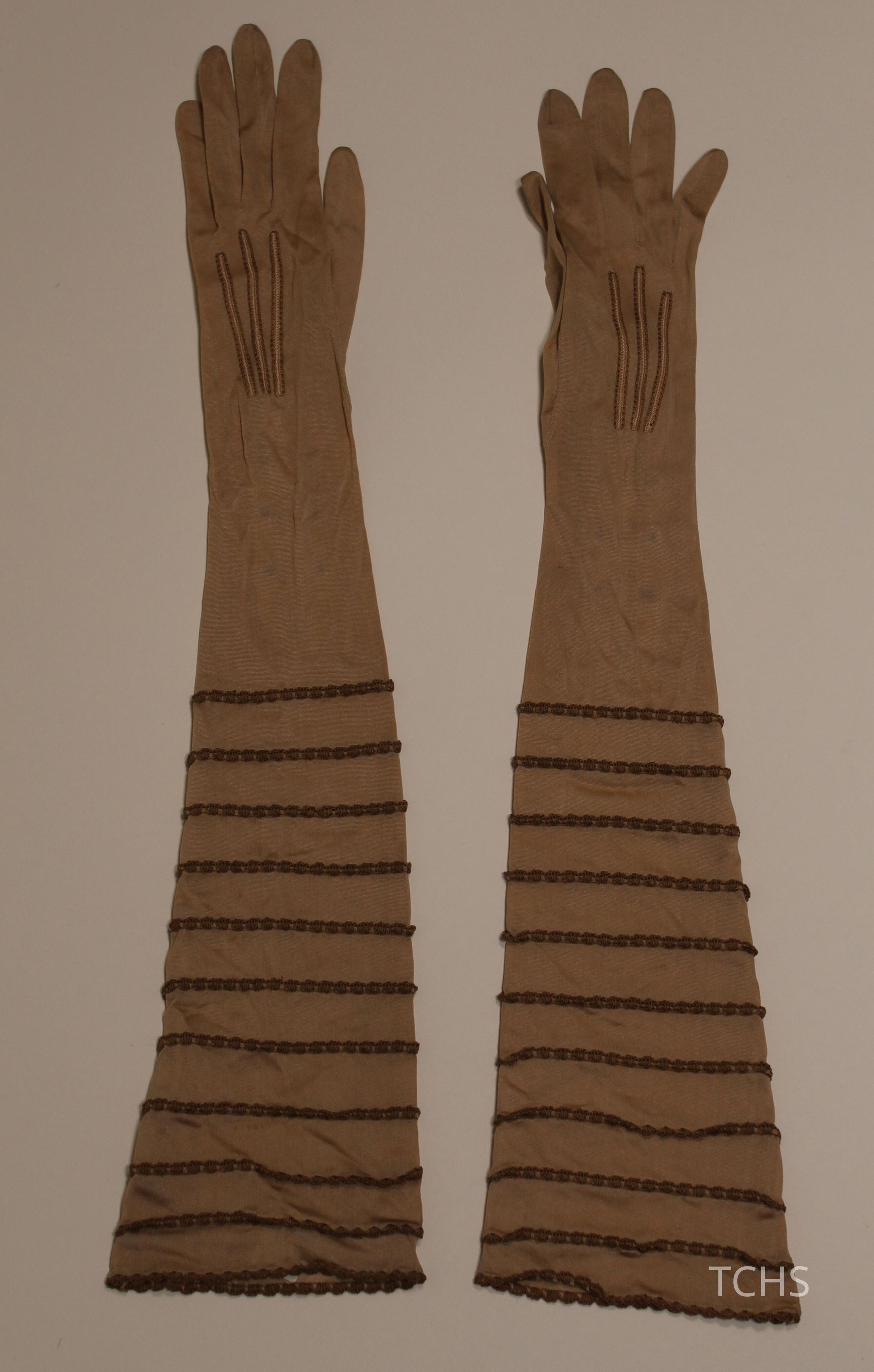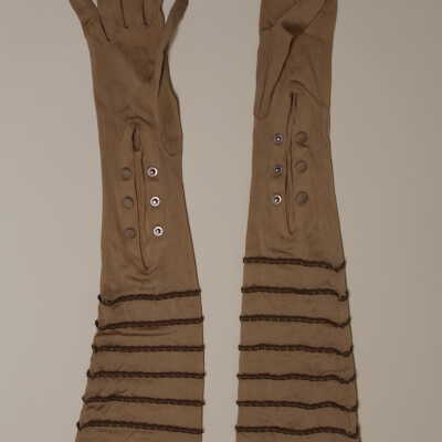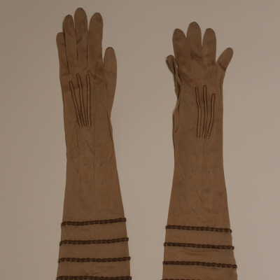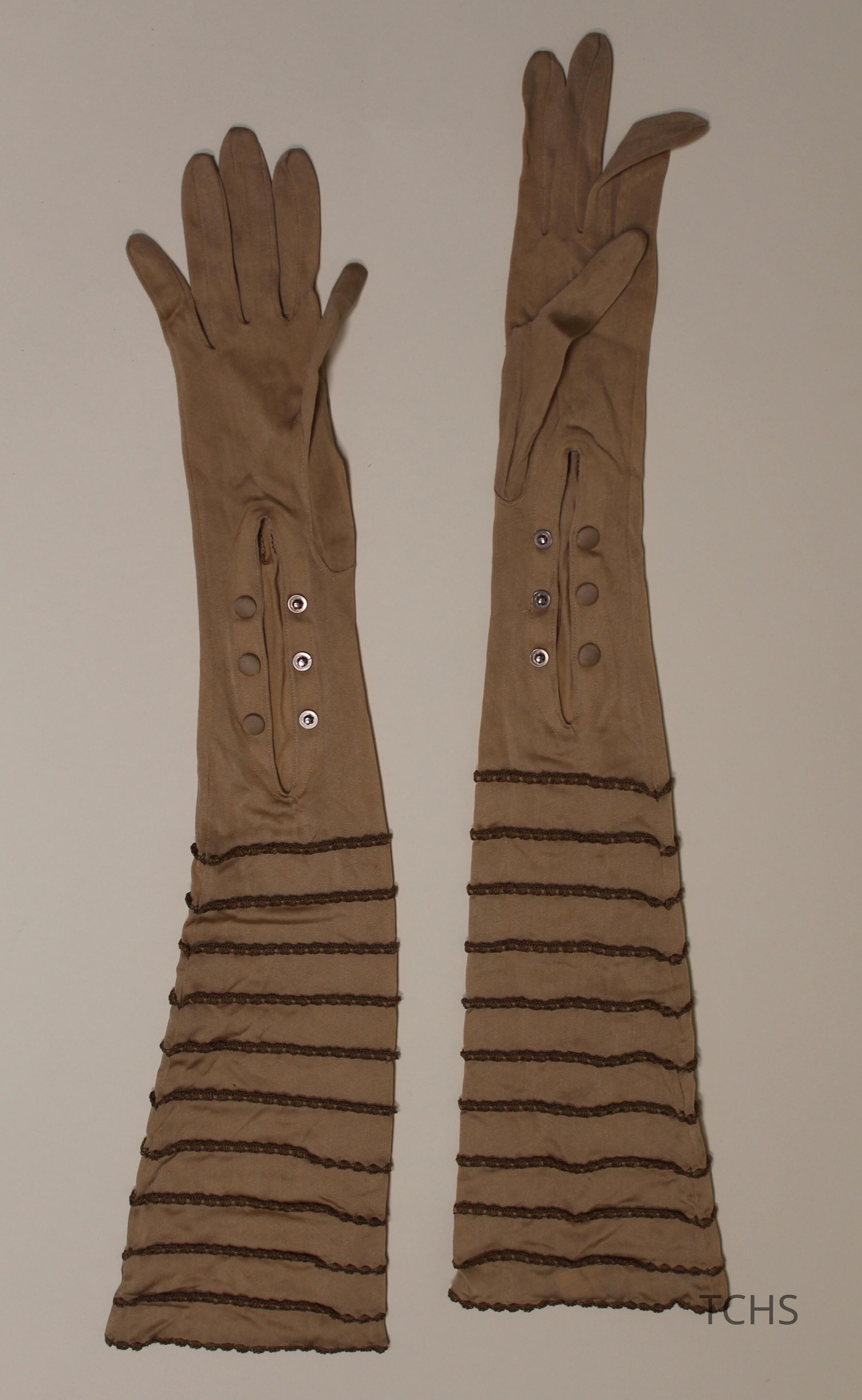 Brown silk gloves with tatting trim