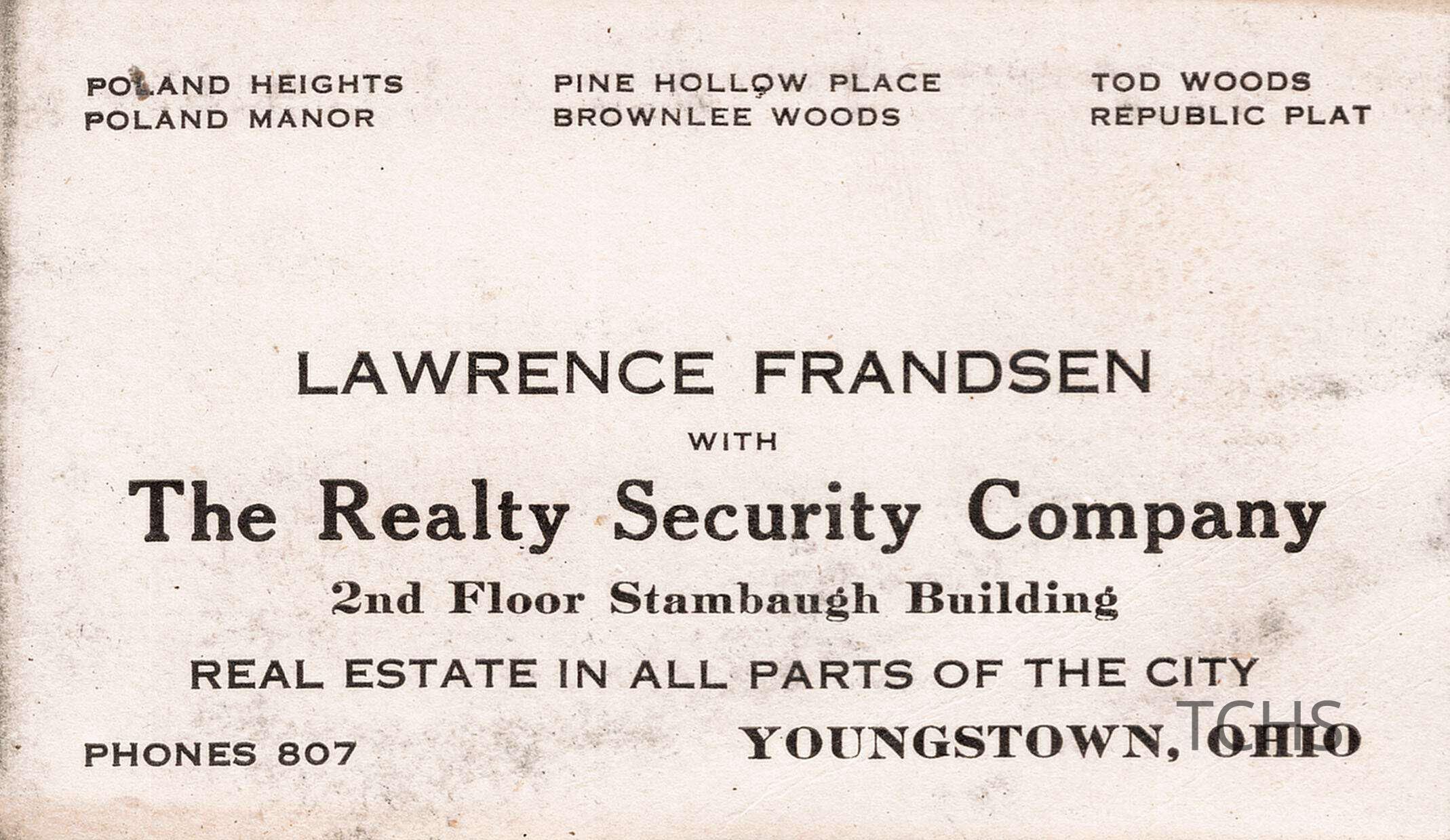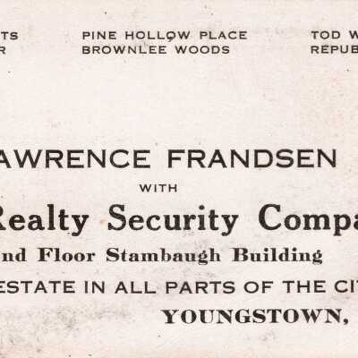 Business Card, Lawrence Frandsen with The Realty Security Company, YoungstownAcquisition