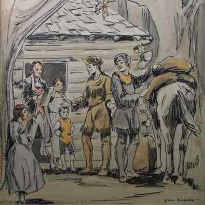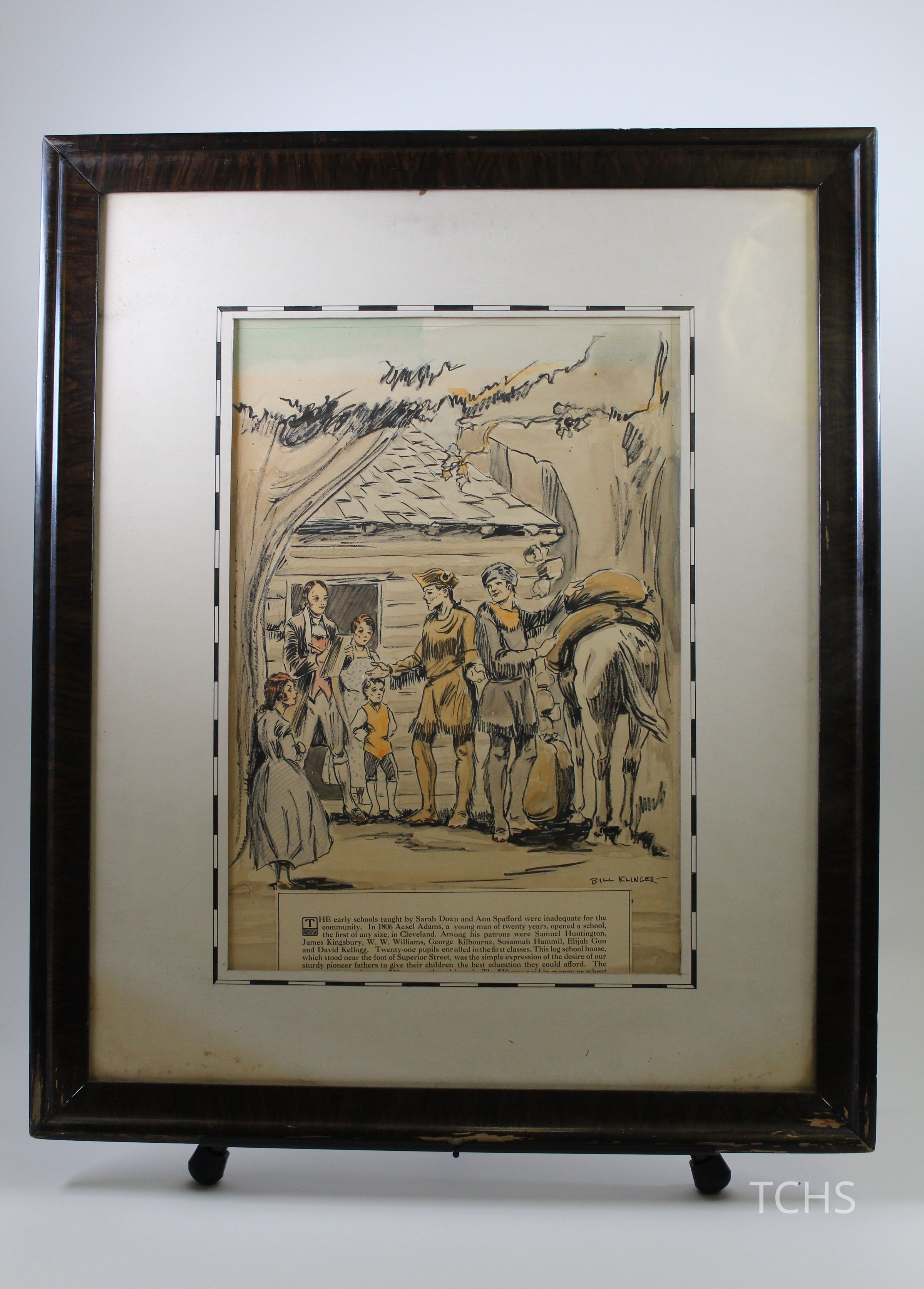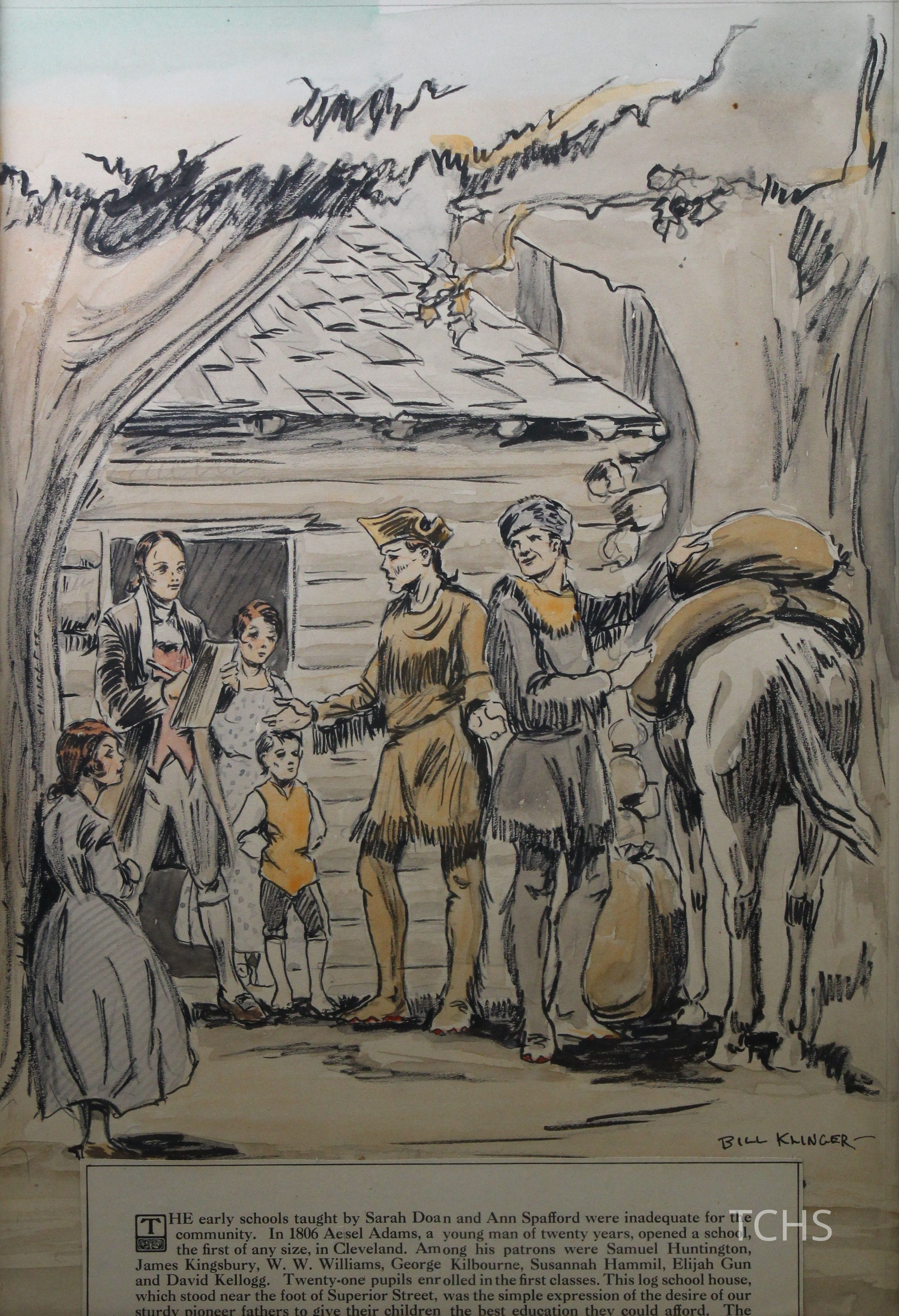 A framed illustration by Bill Klinger of Aesel Adams, who in 1806 opened one of the first schools in Cleveland, Ohio.Acquisition