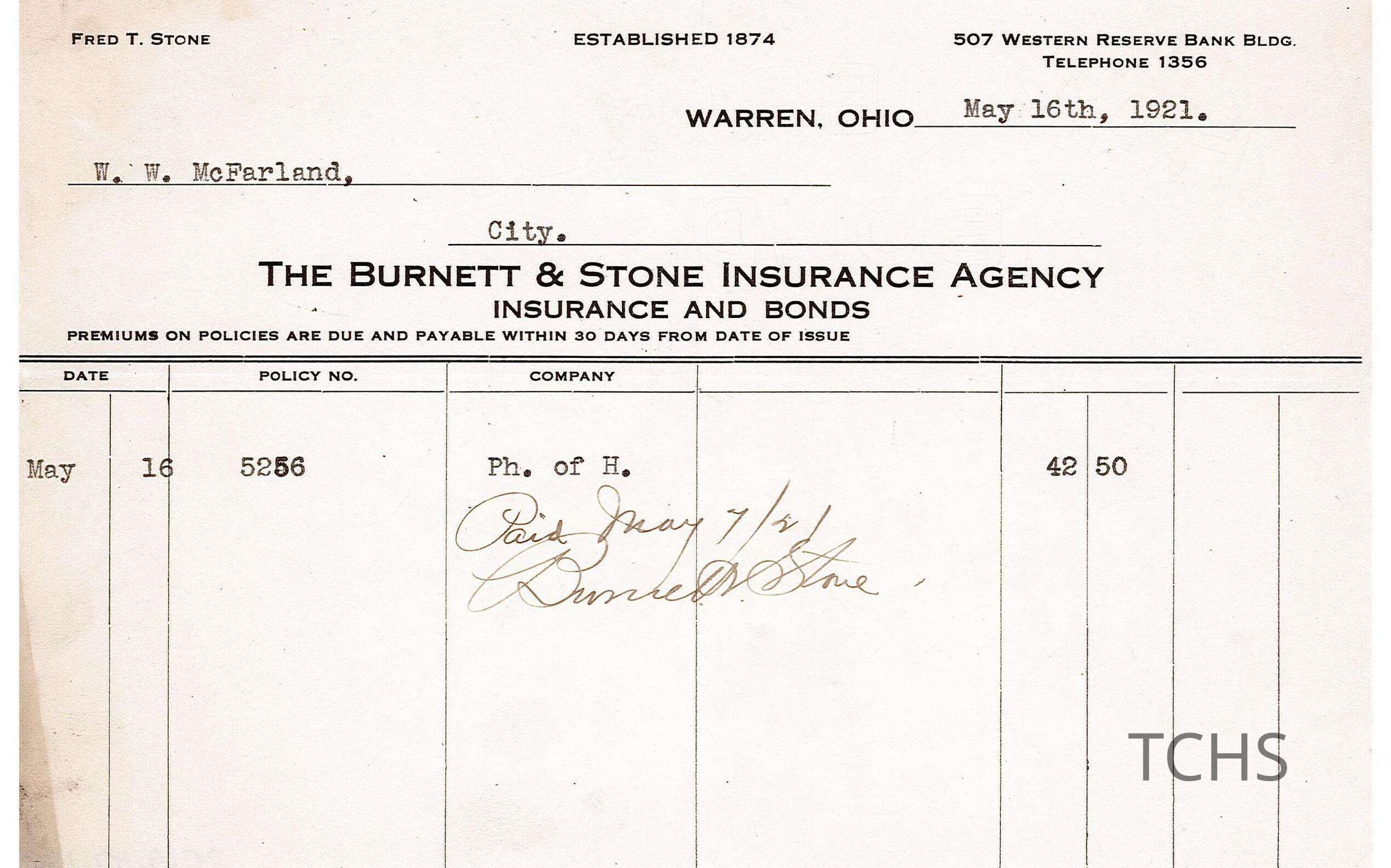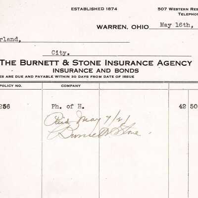 Receipt from The Burnett & Stone Insurance Agency