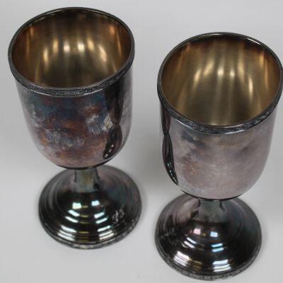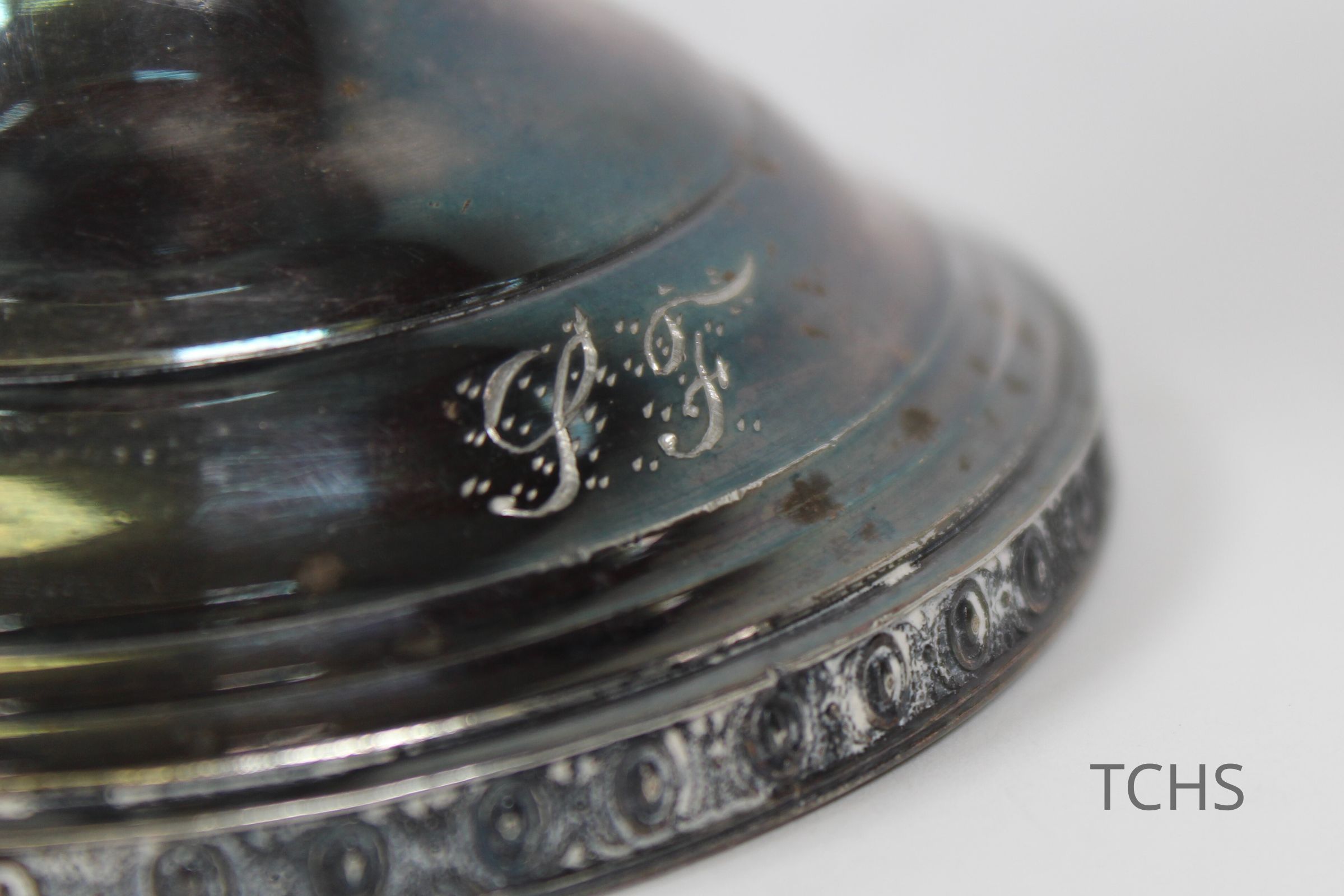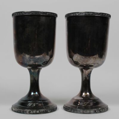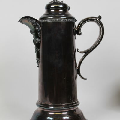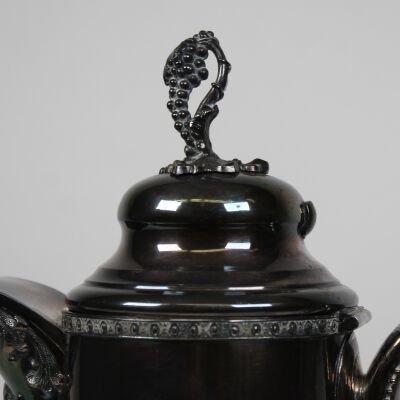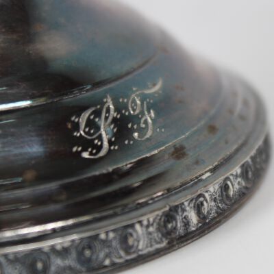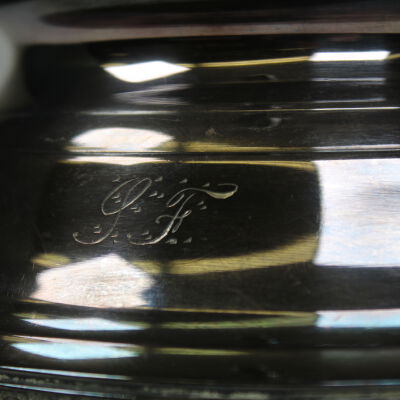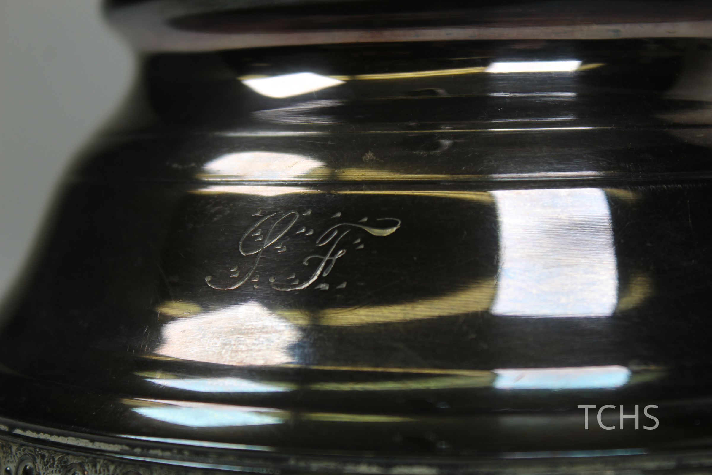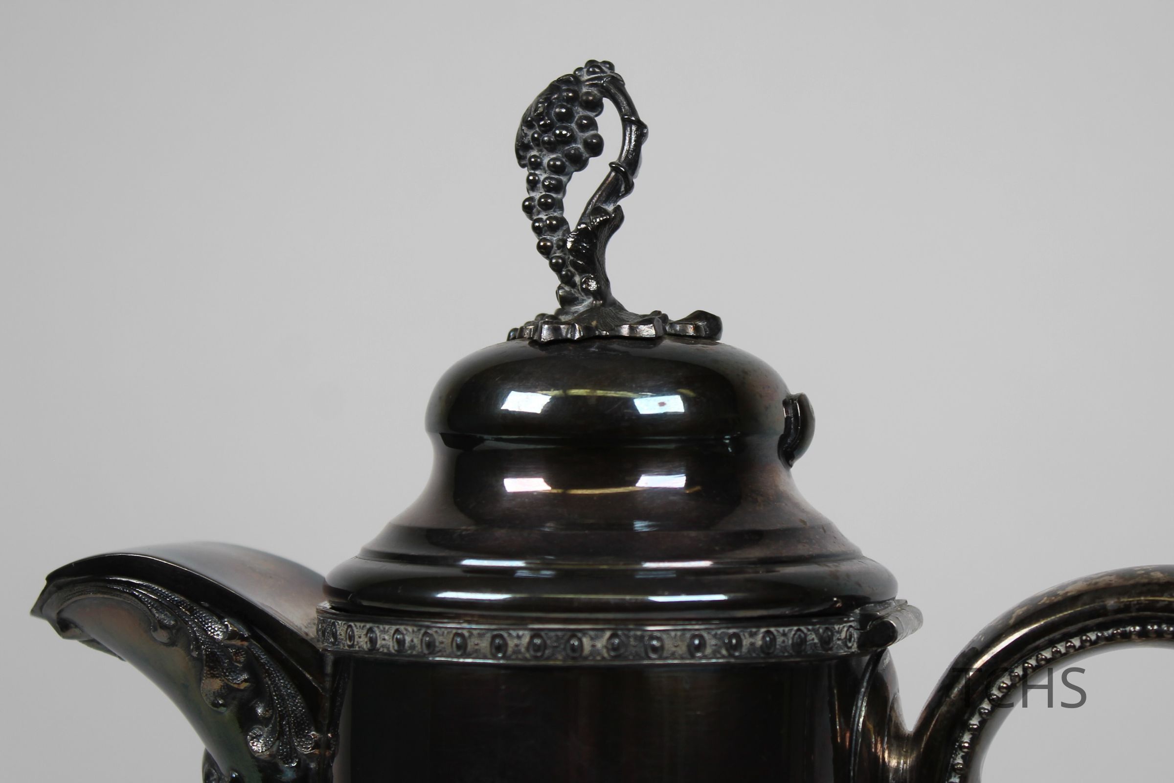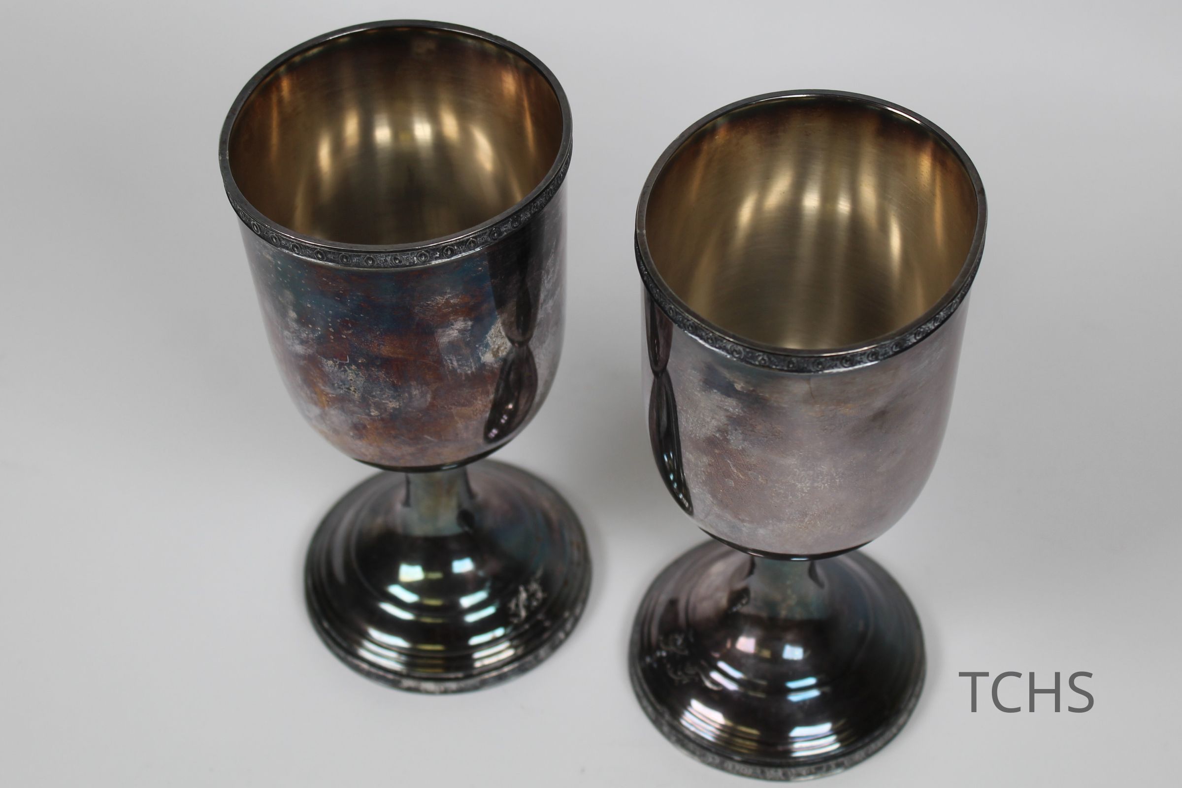 An 1875 silver communion set, four pieces, from the Brockway Methodist Church located in Hartford Township. The set includes a flagon, tray, and two goblets.
