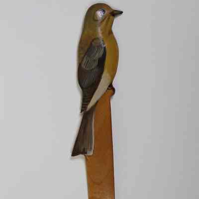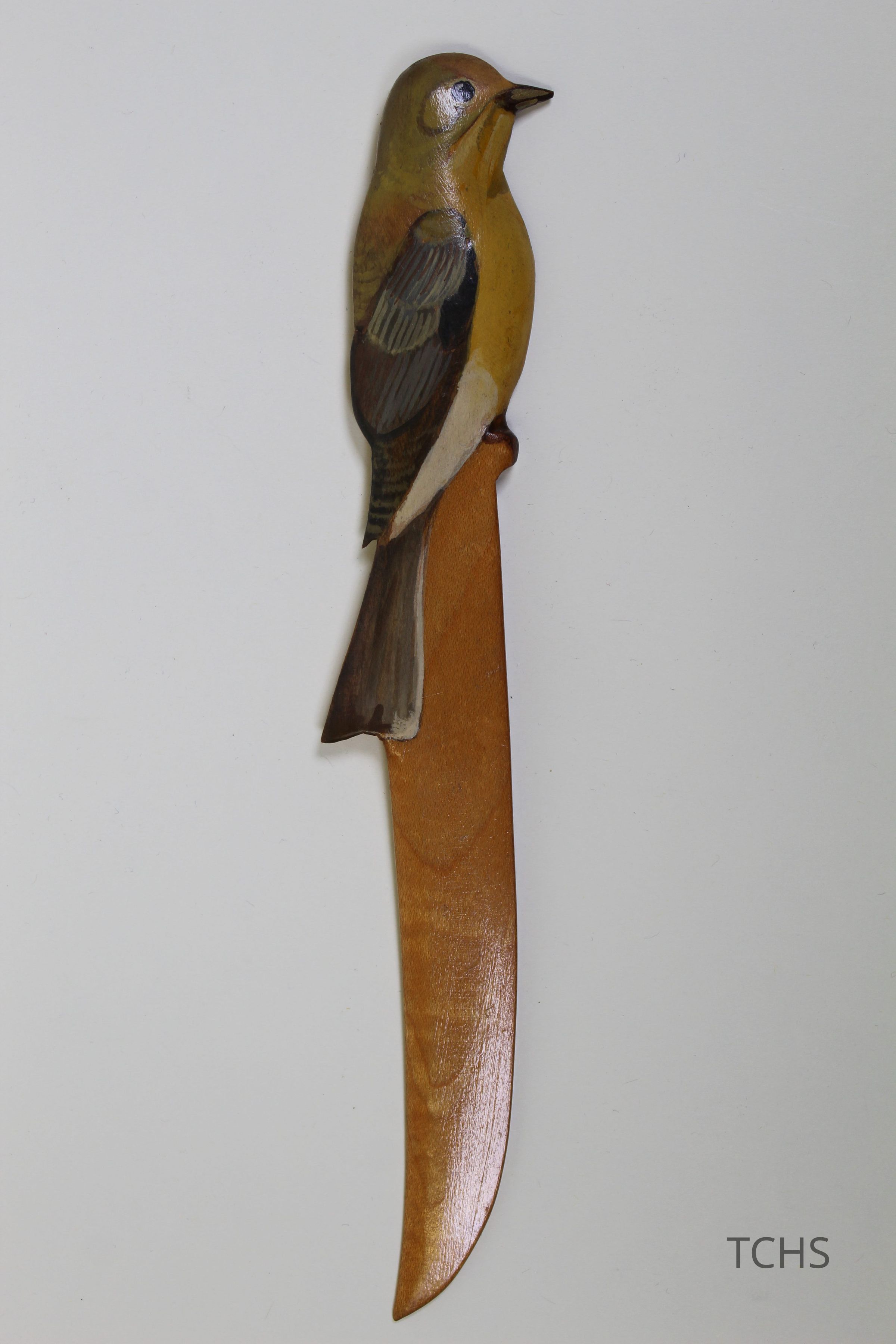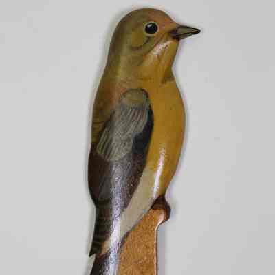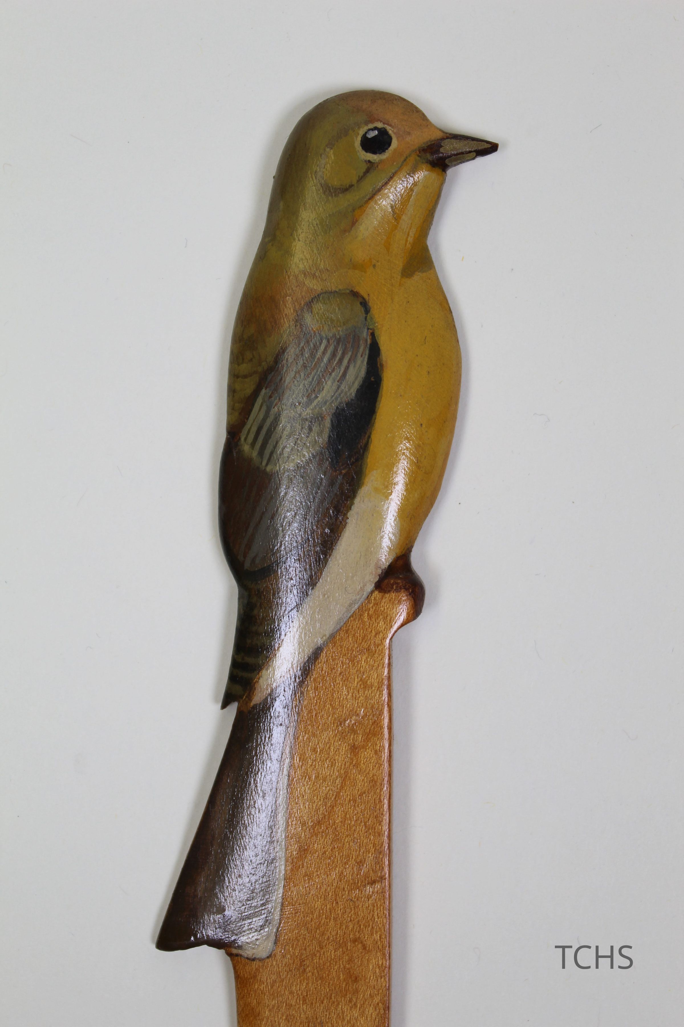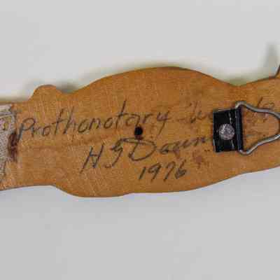 Wood bird carving of a Prothonotary Warbler by H.G. Downs, dated 1976.Acquisition