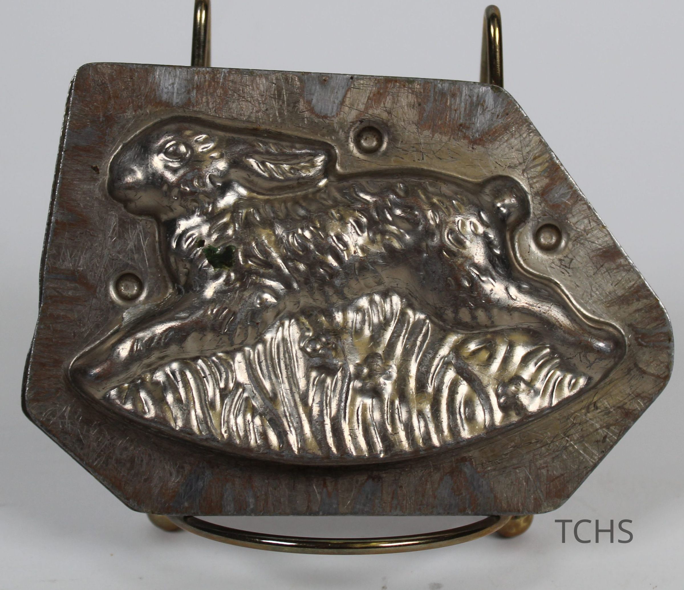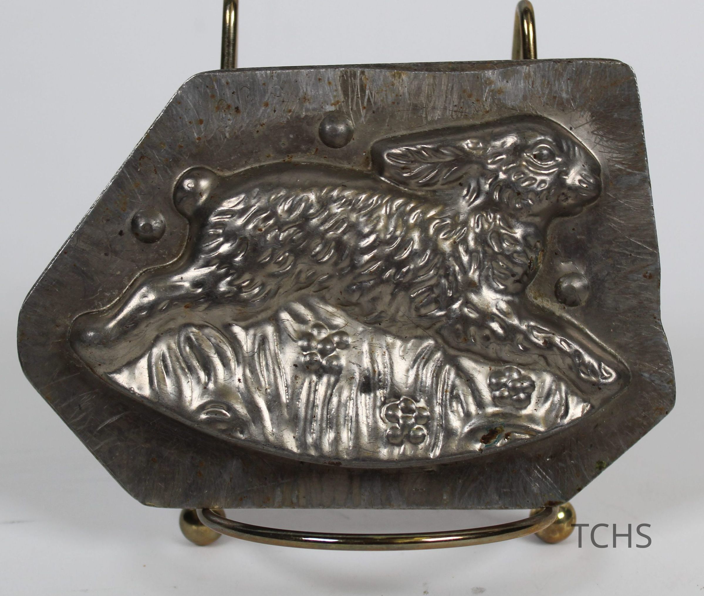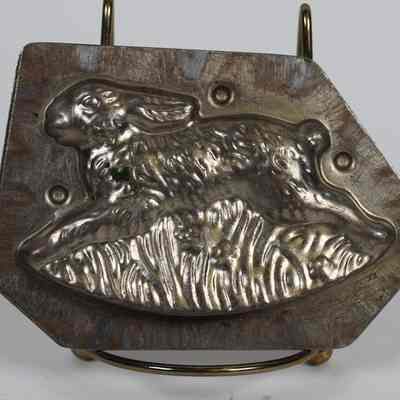 A medium-sized candy mold of a rabbit jumping, used for Easter. Used at Kozy Korner Candies in Warren, OH.Acquisition