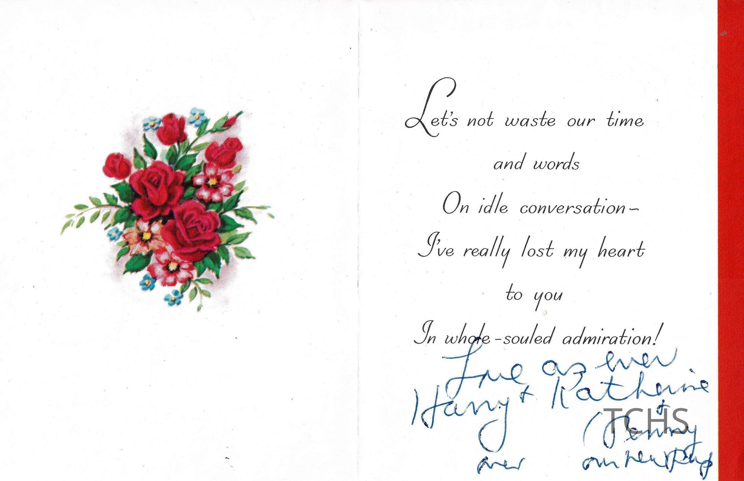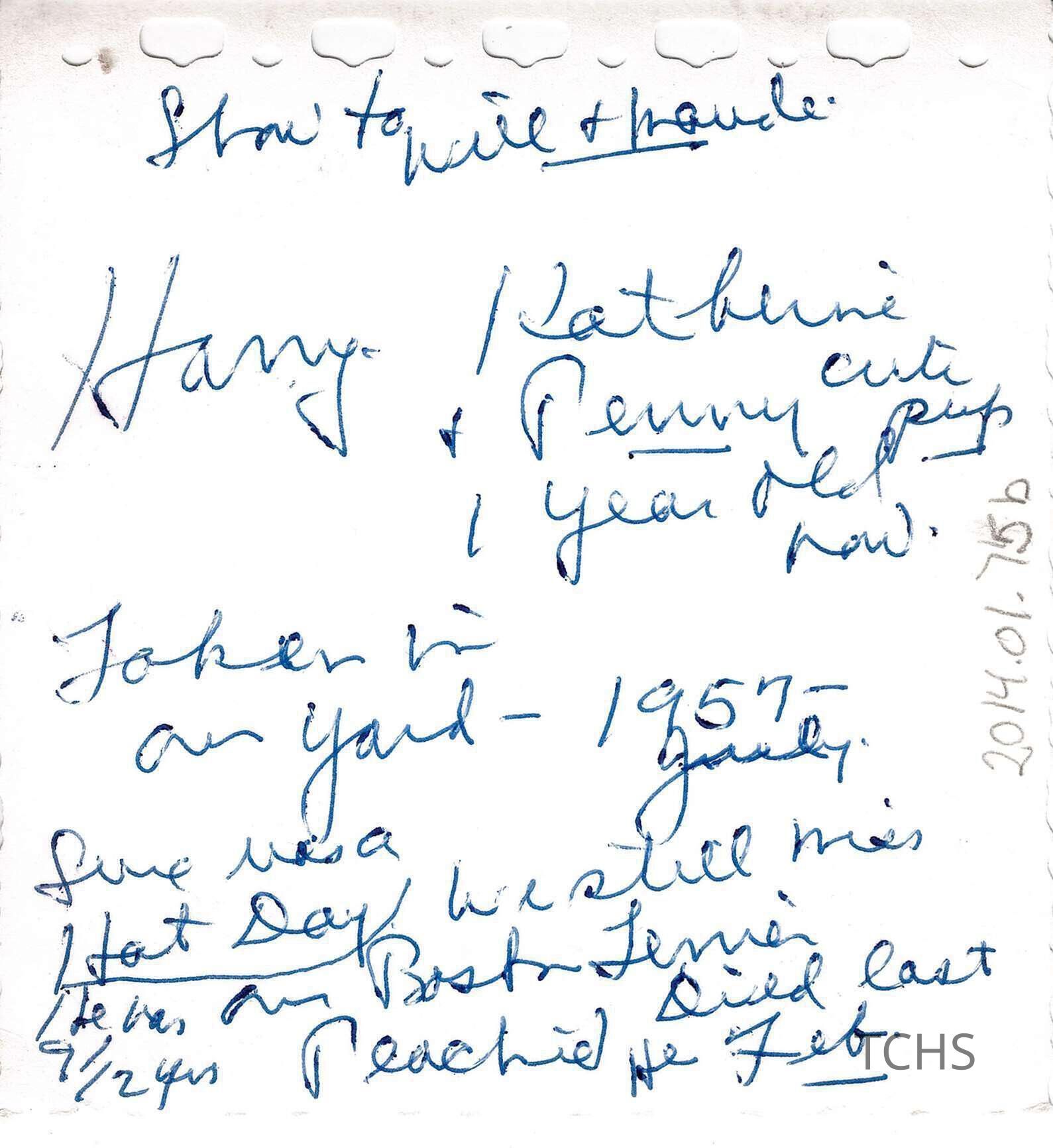 Card and photograph from "Harry and Katherine" dated 1957. Last name is not given.Acquisition