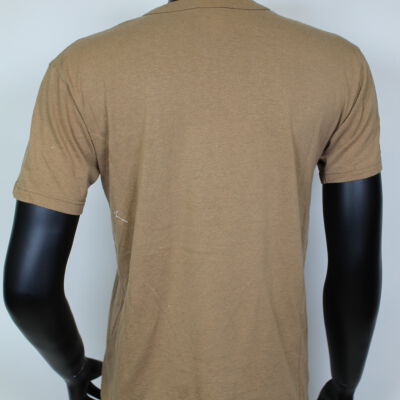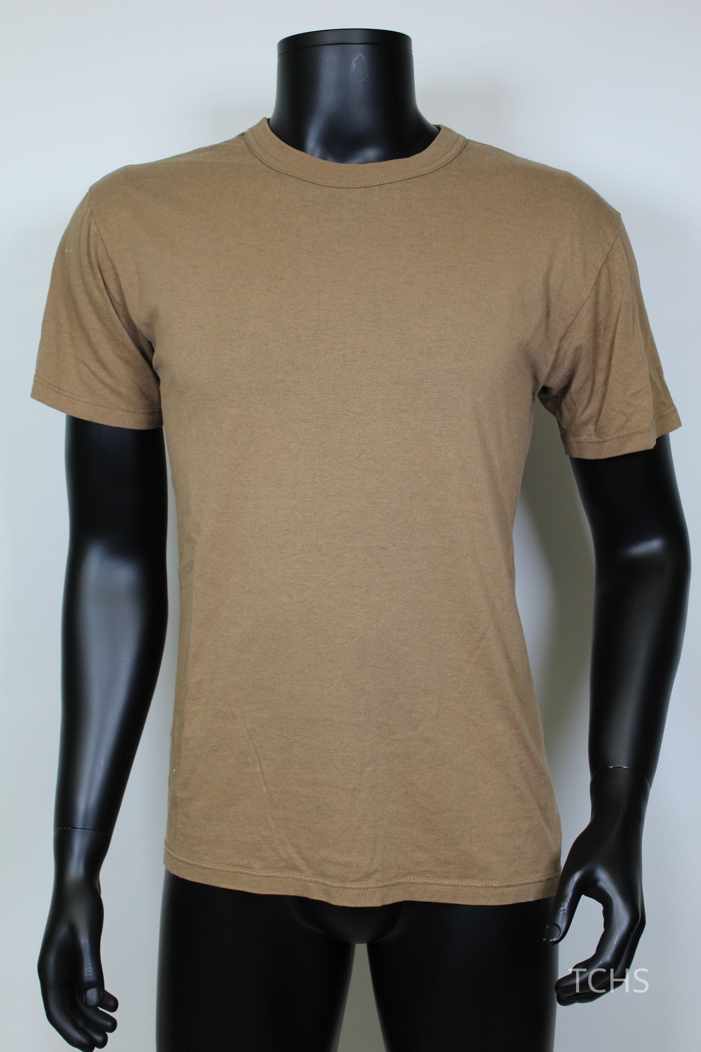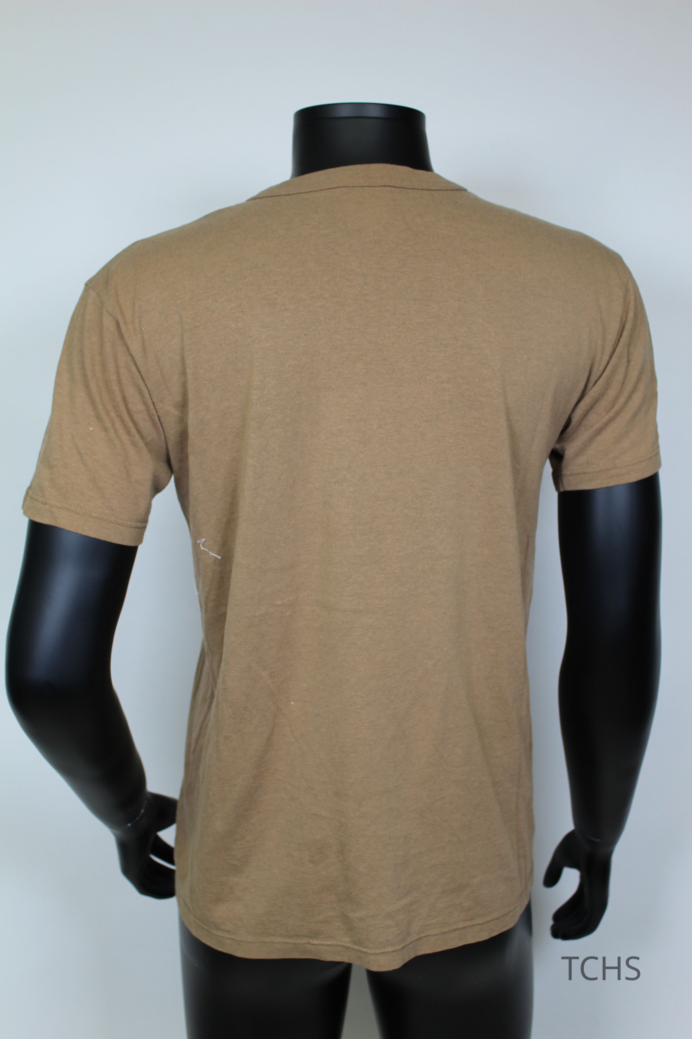 A plain tan uniform shirt belonging to Airman Shawn Carvin from the Afghanistan War.Acquisition