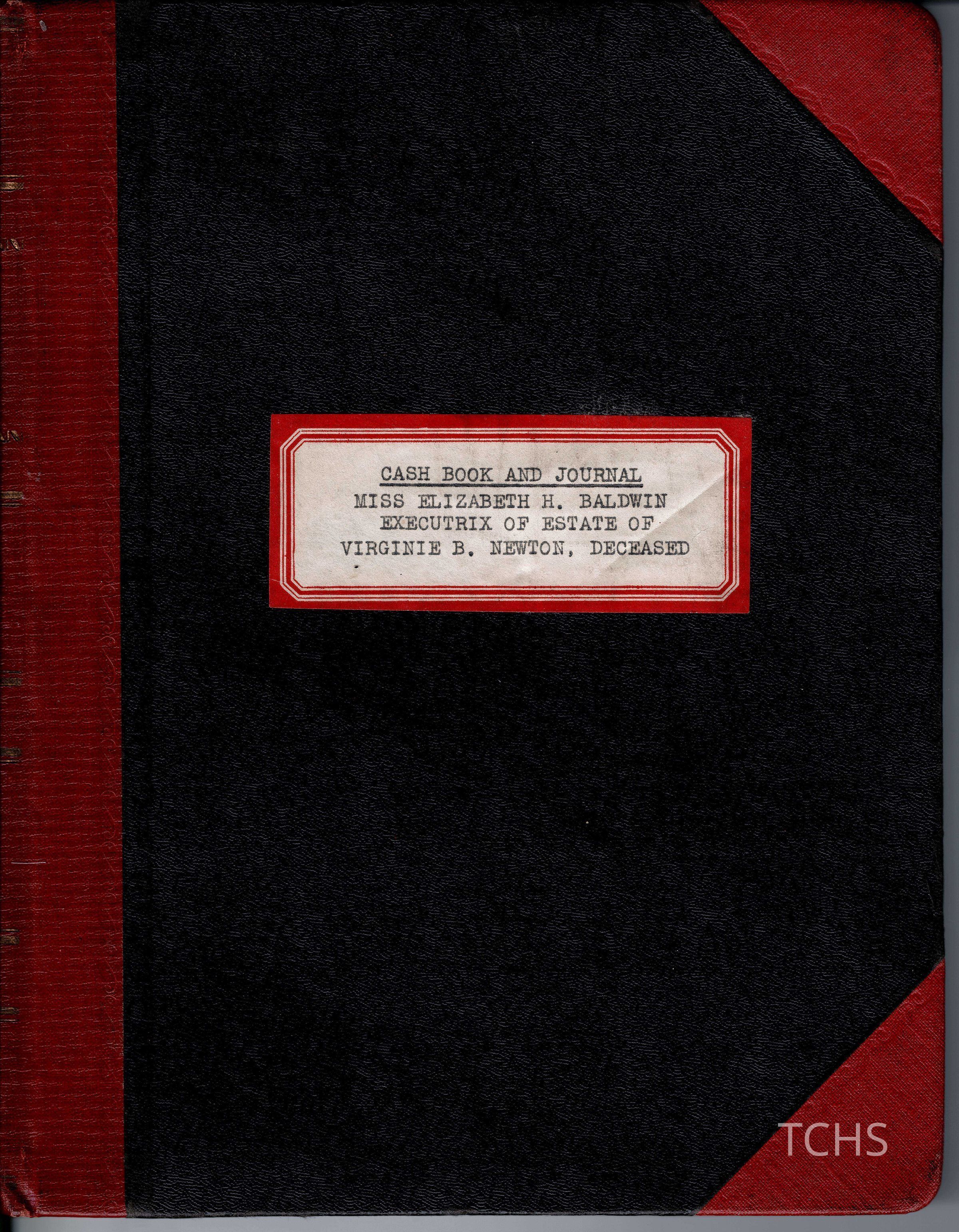 Cash Book and Journal, Virginie B. Newton Estate by (niece?) Miss. Elizabeth H. Baldwin, Executrix.Acquisition