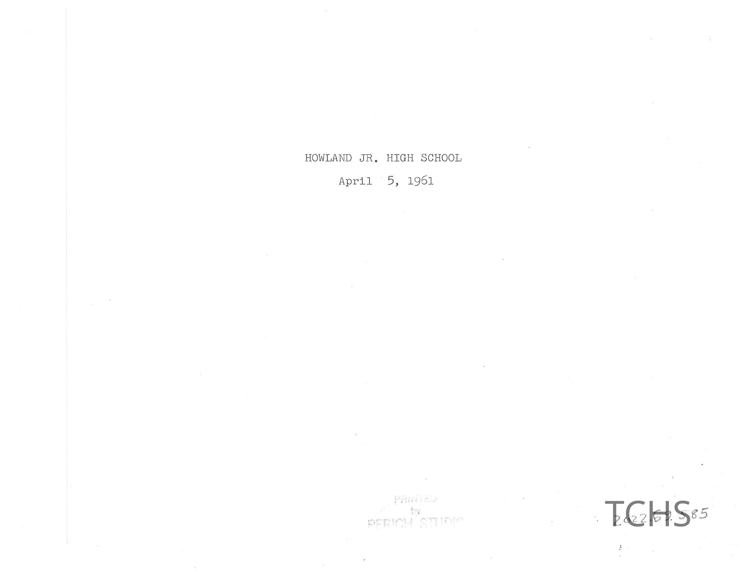 Howland Junior High School 4-5-61Acquisition