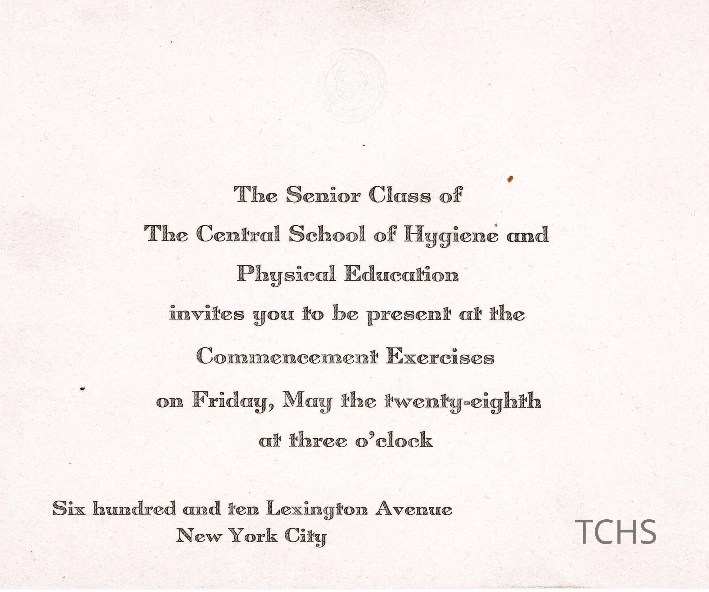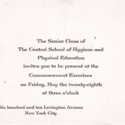 Graduation invitation for The Central School of Hygiene and Physical Education. Undated. Graduate was Ruth Galley, card enclosed.