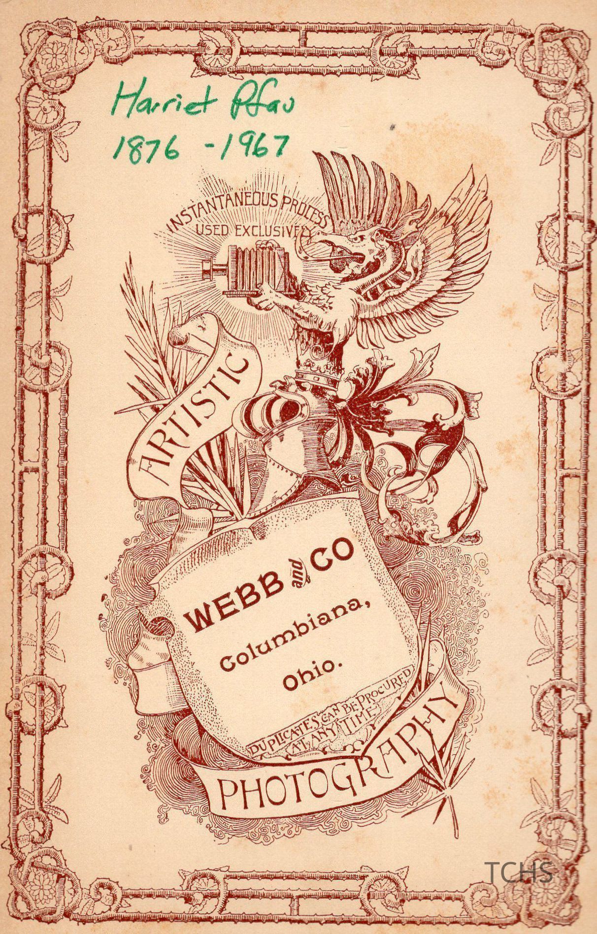 Harriet Pfau (1876-1967) taken by the Webb & Co. Photography Studio.Photograph Details