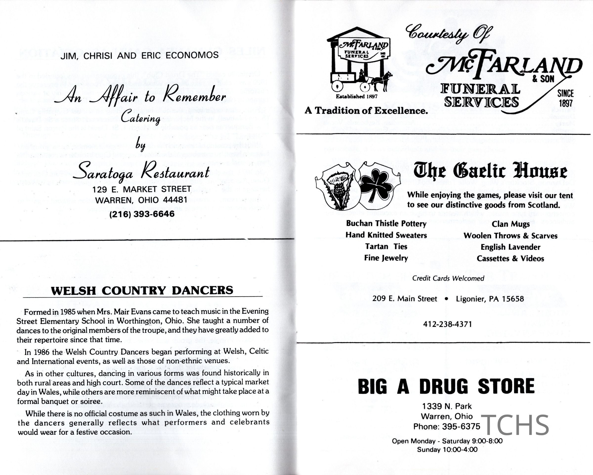 The Sixth Annual Celtic Heritage Fair was held on the Square in 1993. The program has a map of activities and many advertisements from Trumbull County and Youngstown businesses.Acquisition