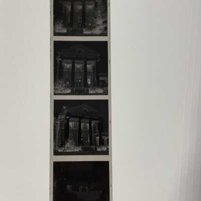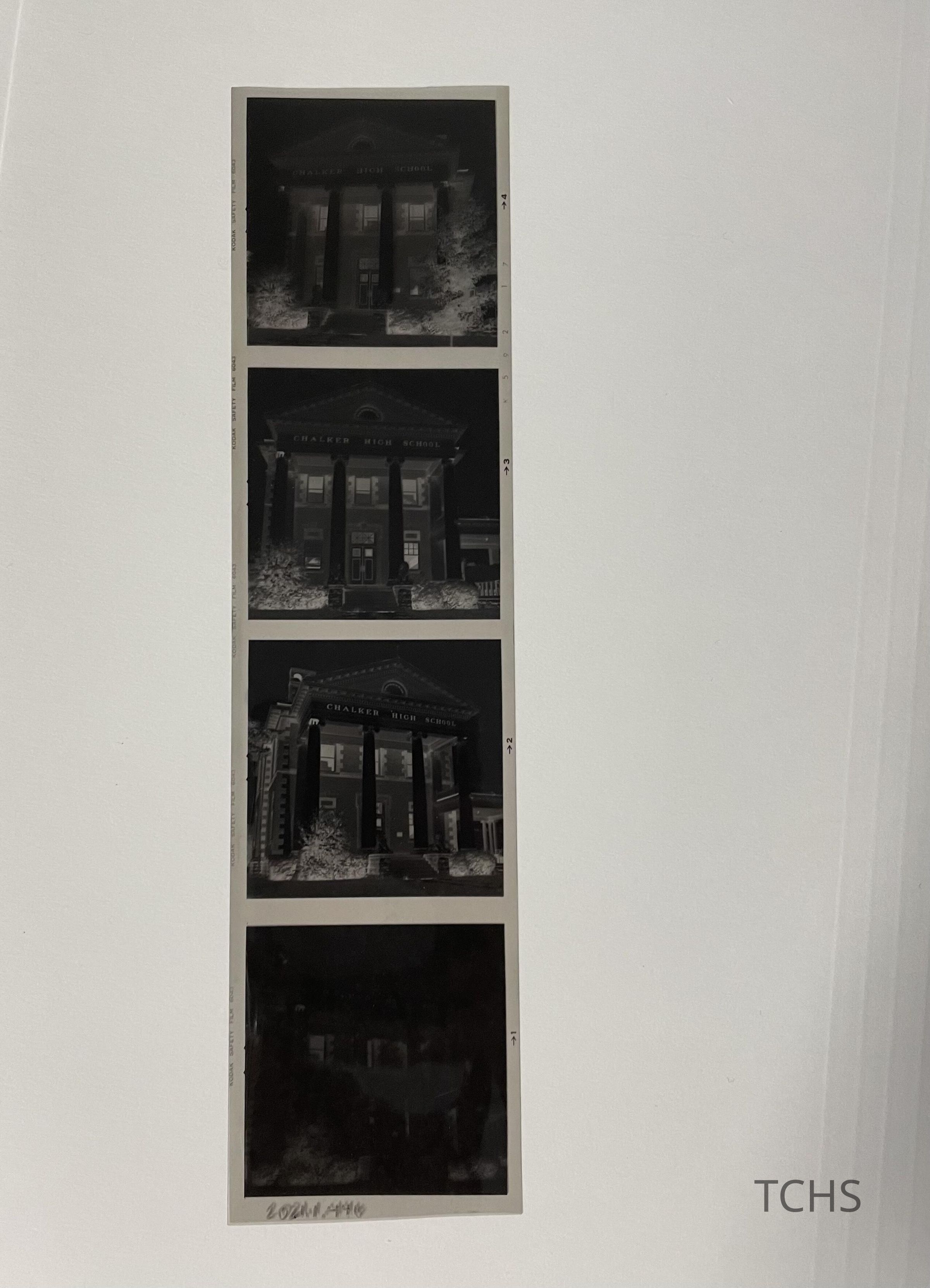 Negative strip with 4 images of the façade of Chalker High School, of Southington.Location
